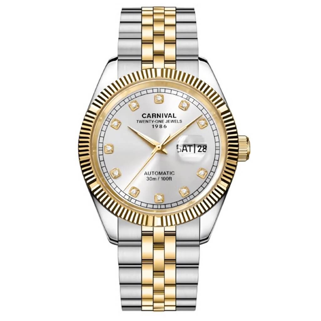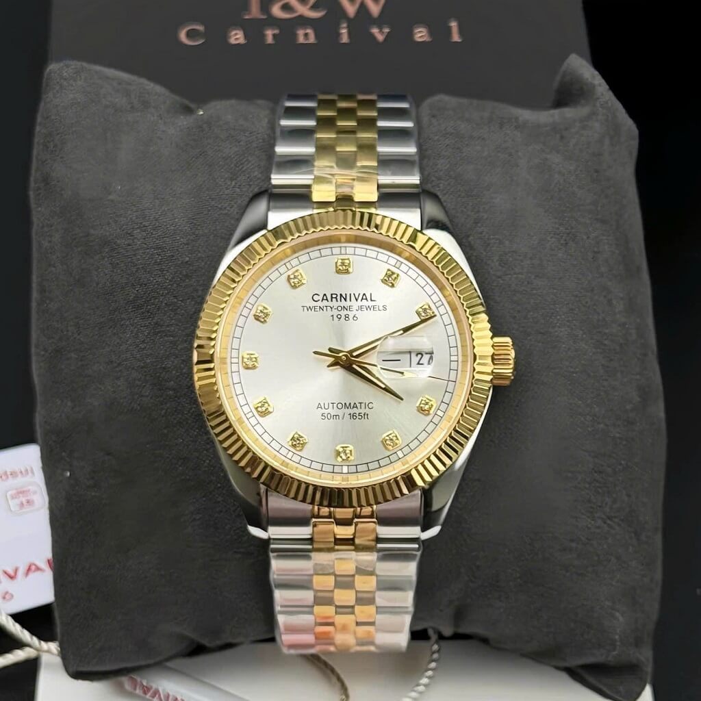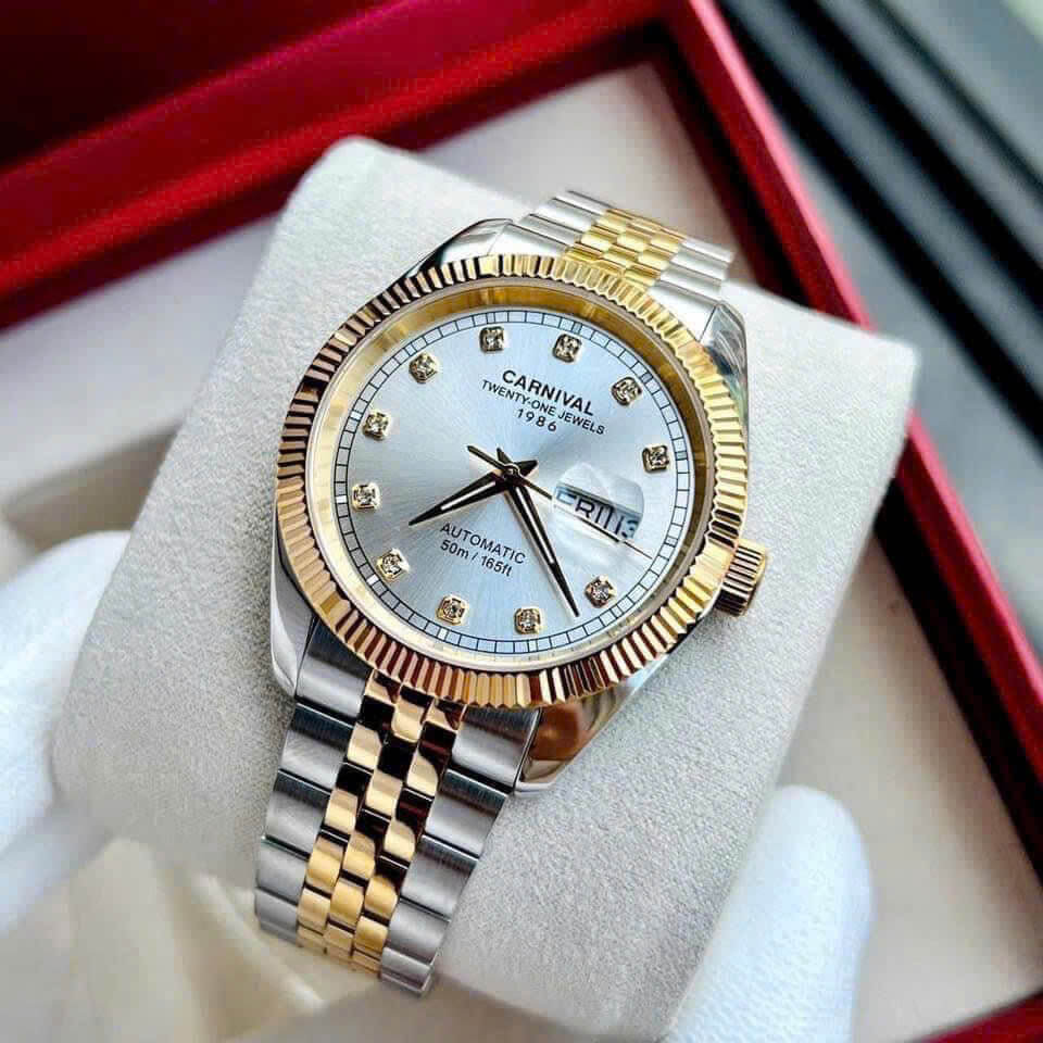 Hình Ảnh Đồng Hồ Nam Carnival 8131G Dây Thép Vỏ Demi Gold White 41mm Chính Hãng