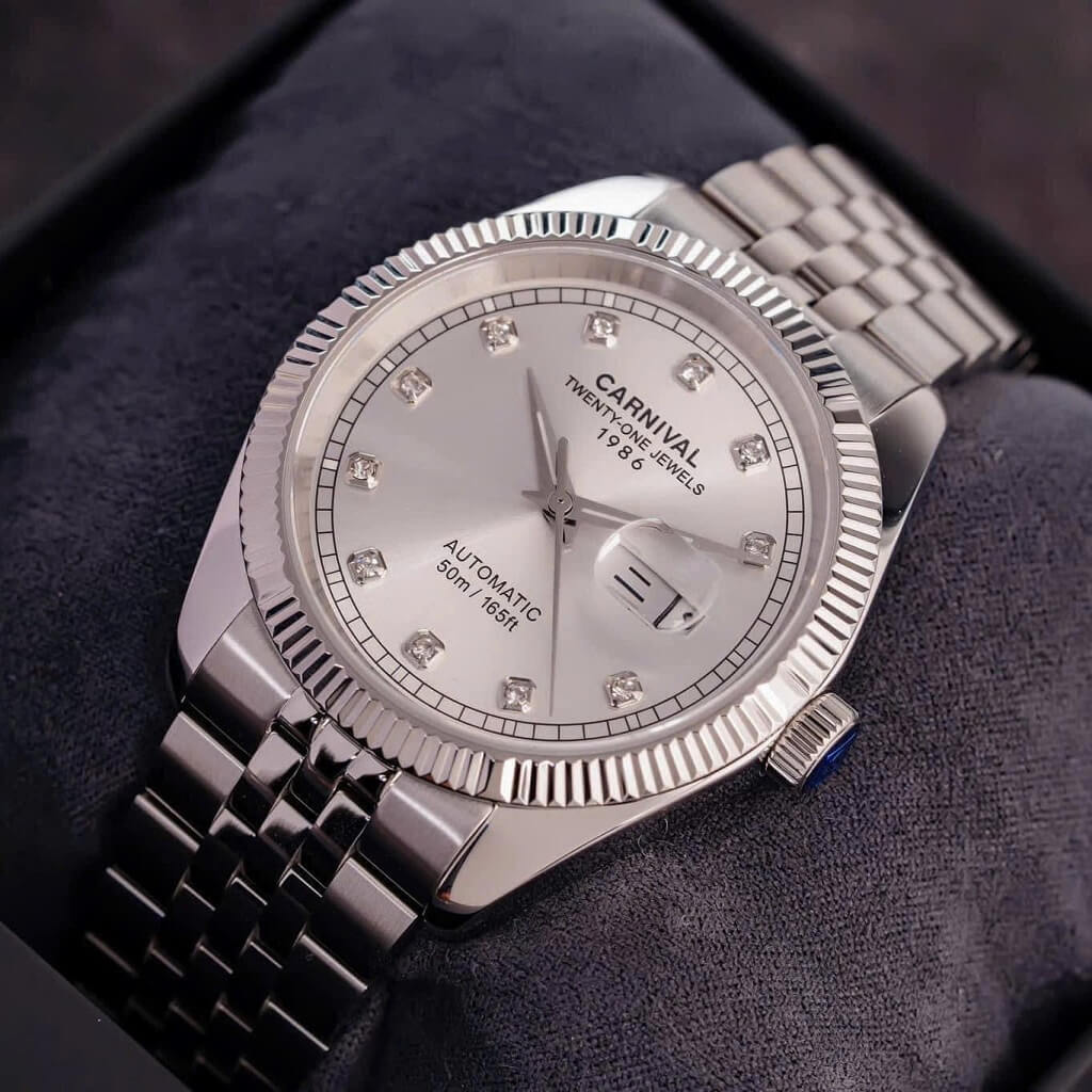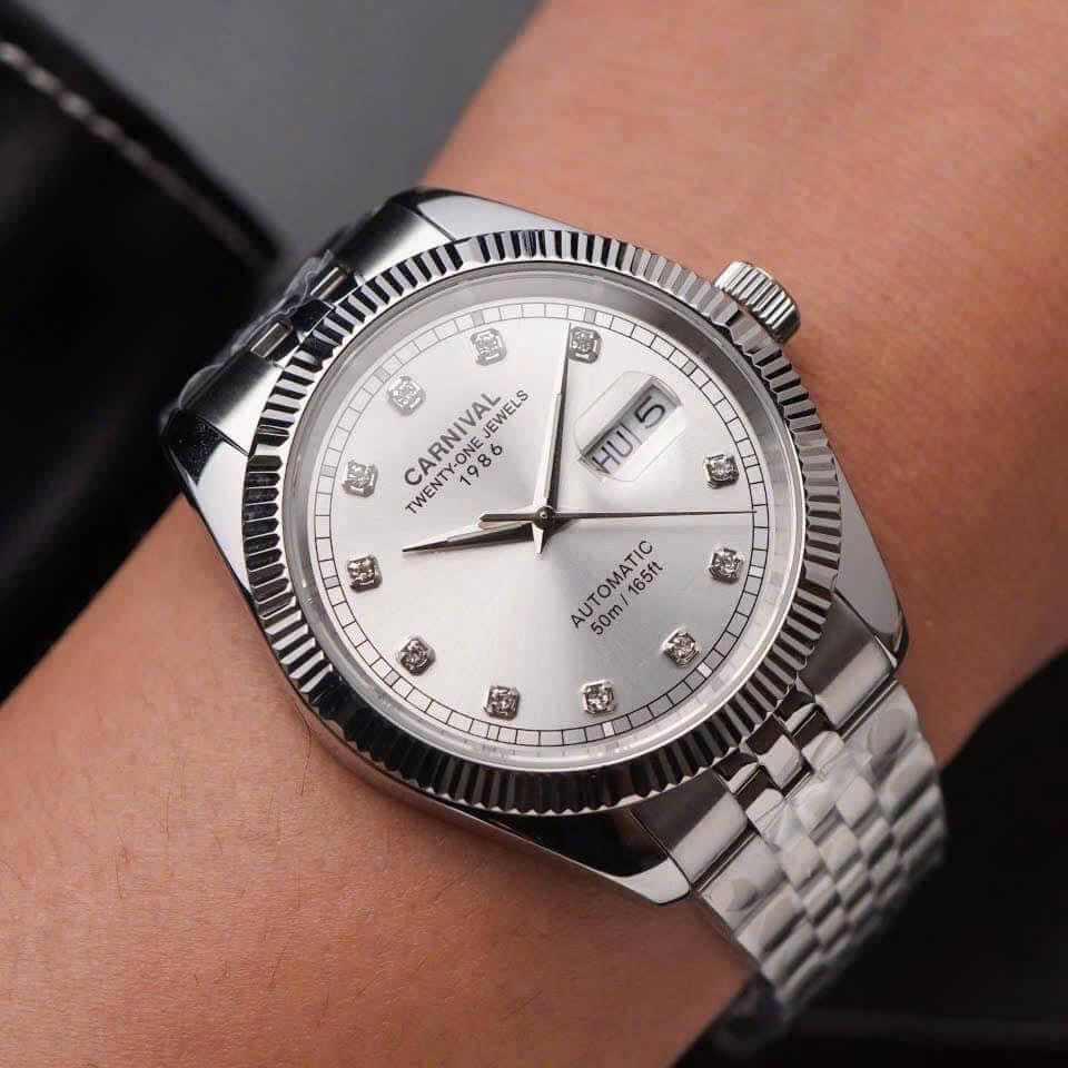 Hình Ảnh Đồng Hồ Nam Carnival 8131G Dây Thép Vỏ Silver White 41mm Chính Hãng