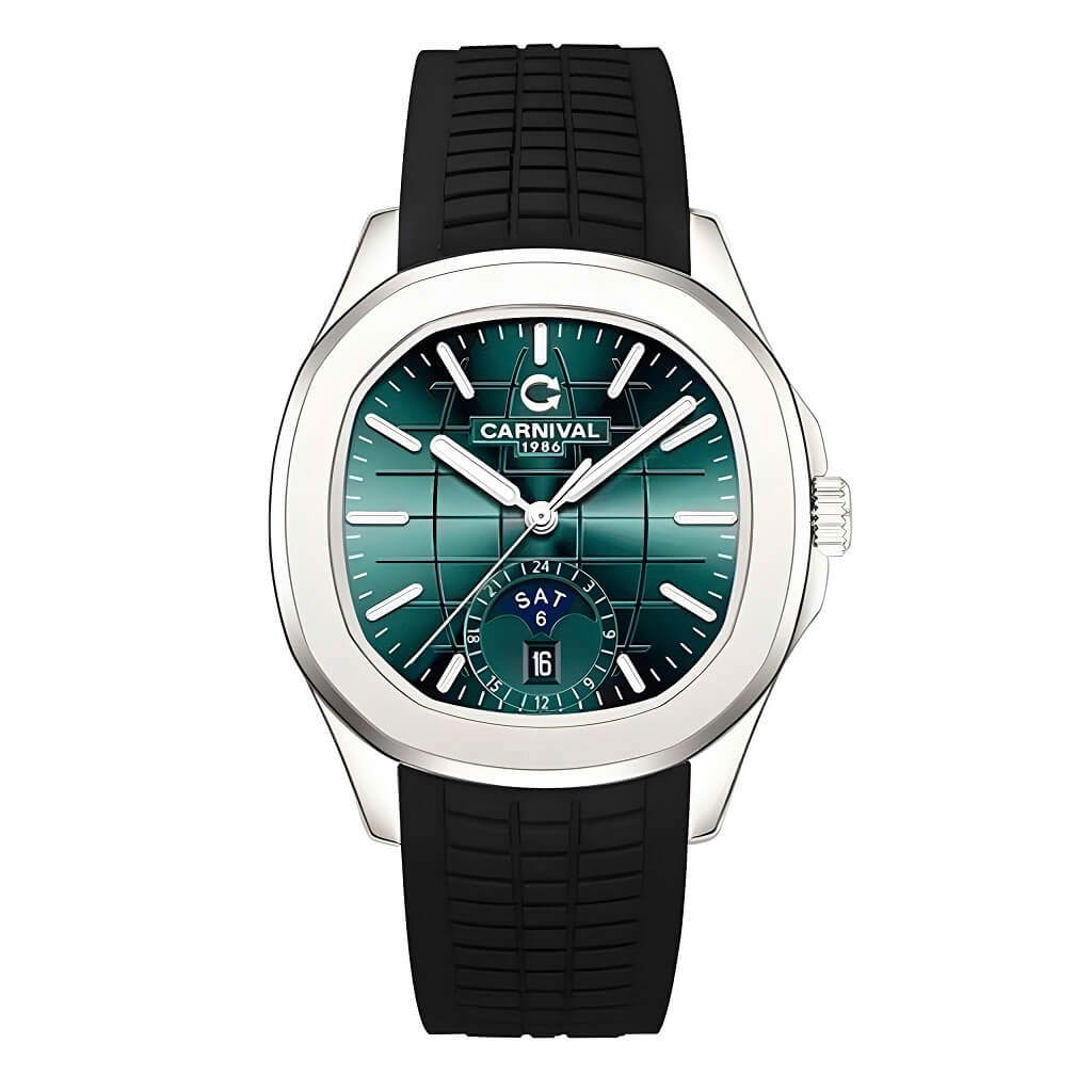 Hình Ảnh Đồng Hồ Nam Carnival Aquanus 8113G Dây Cao Su Black-Green Vỏ Silver 40mm chính hãng