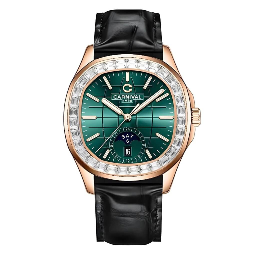 Hình Ảnh Đồng Hồ Nam Carnival Aquanus 8113G2 Dây Da Black Mặt Green Vỏ Rose 40mm chính hãng
