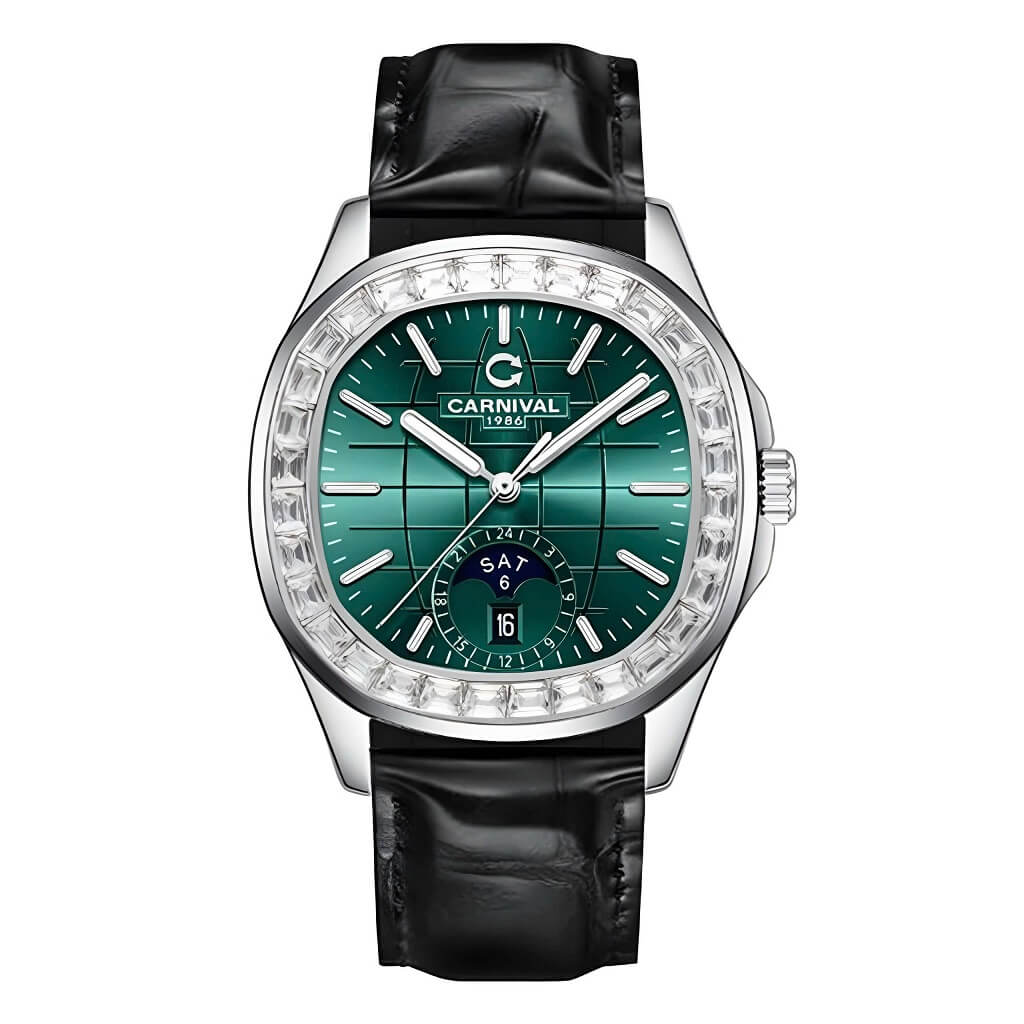 Hình Ảnh Đồng Hồ Nam Carnival Aquanus 8113G2 Dây Da Black Mặt Green Vỏ Silver 40mm chính hãng