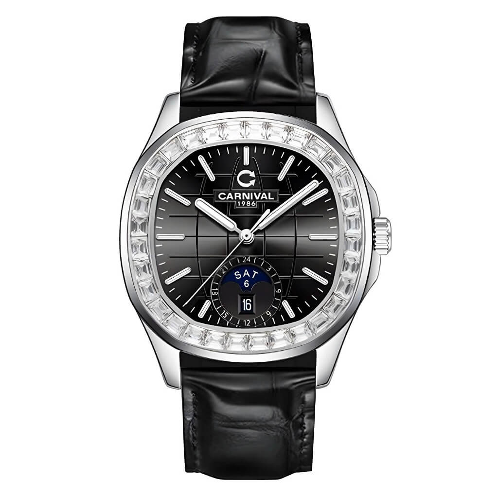Hình Ảnh Đồng Hồ Nam Carnival Aquanus 8113G2 Dây Da Đen Vỏ Silver 40mm chính hãng