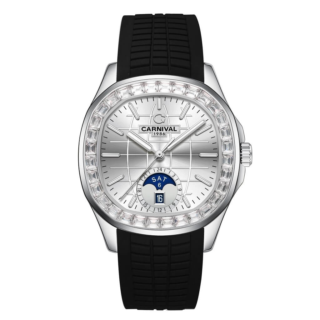 Hình Ảnh Đồng Hồ Nam Carnival Aquanus 8113G2 Dây Silicone Đen Silver 40mm chính hãng