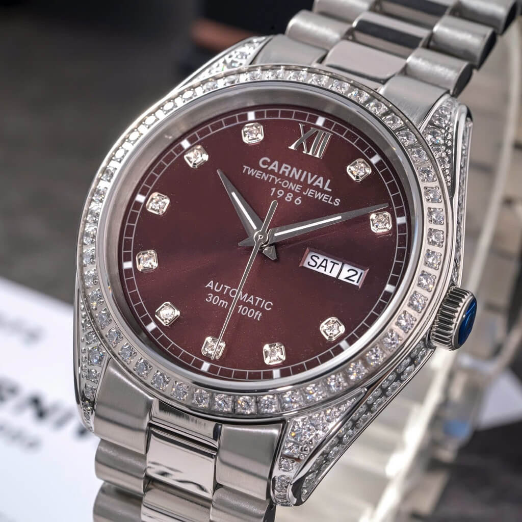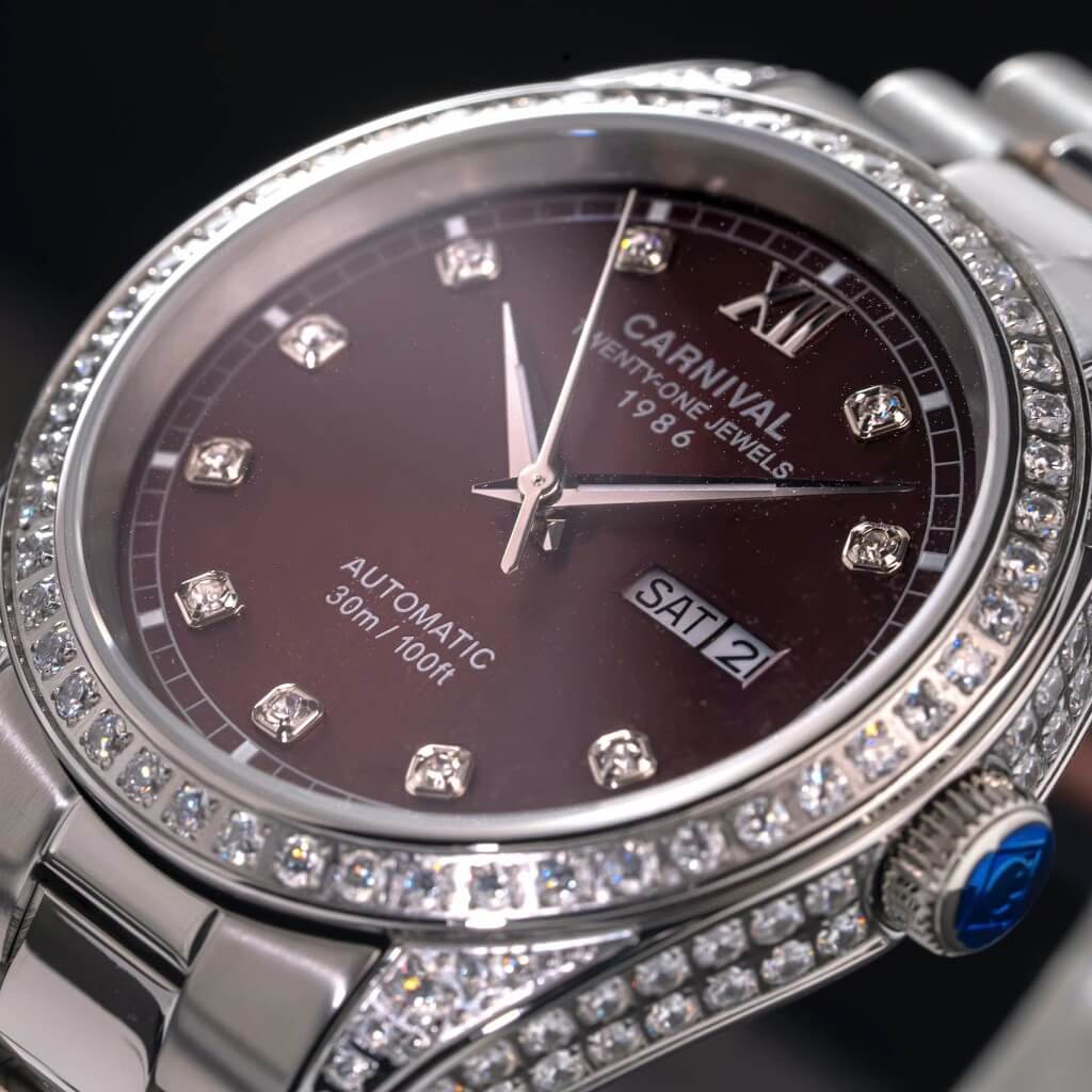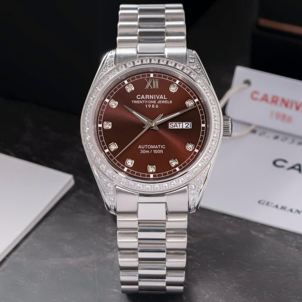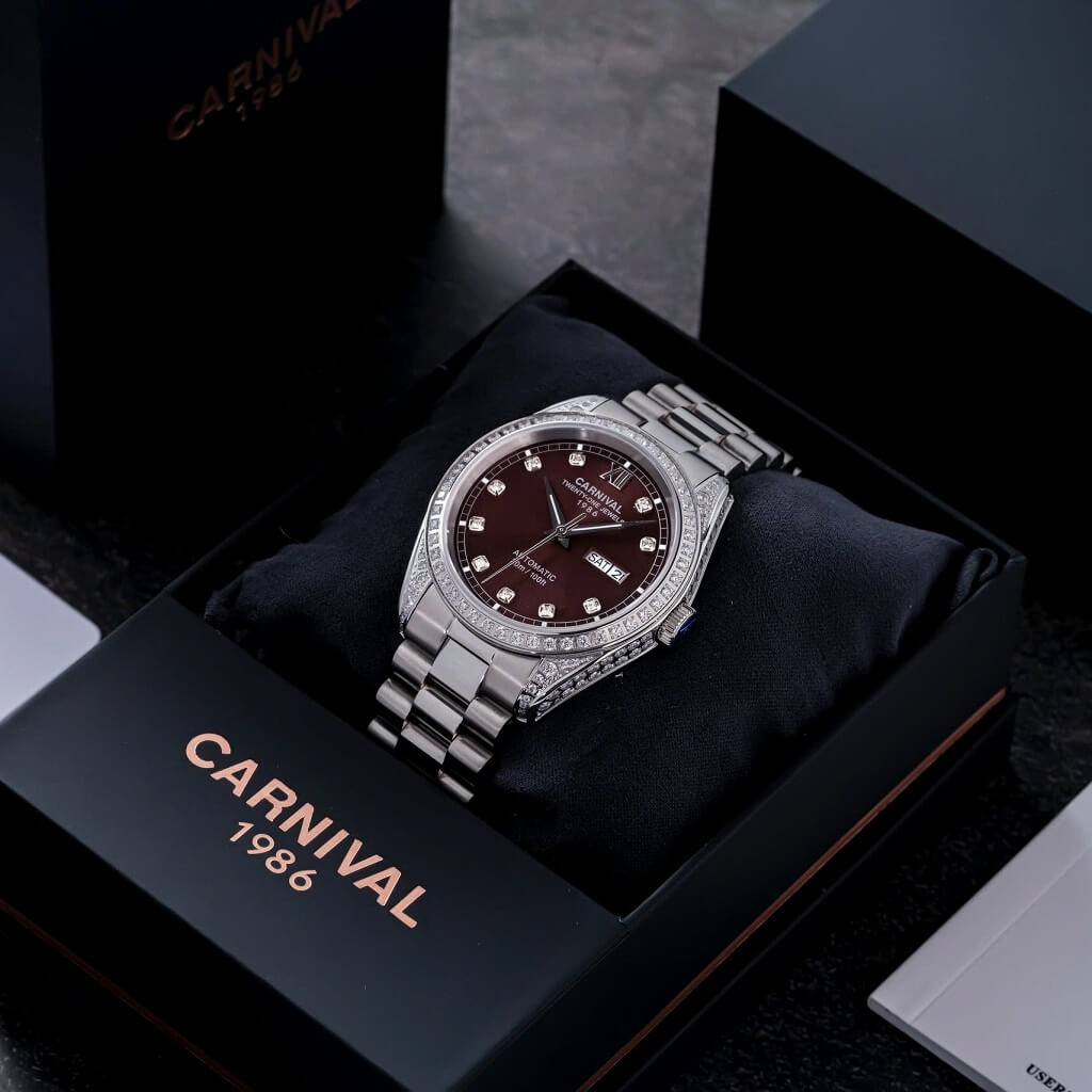 - Chất liệu vỏ: Thép không gỉ 316L, đá swarovski