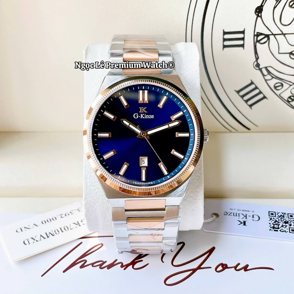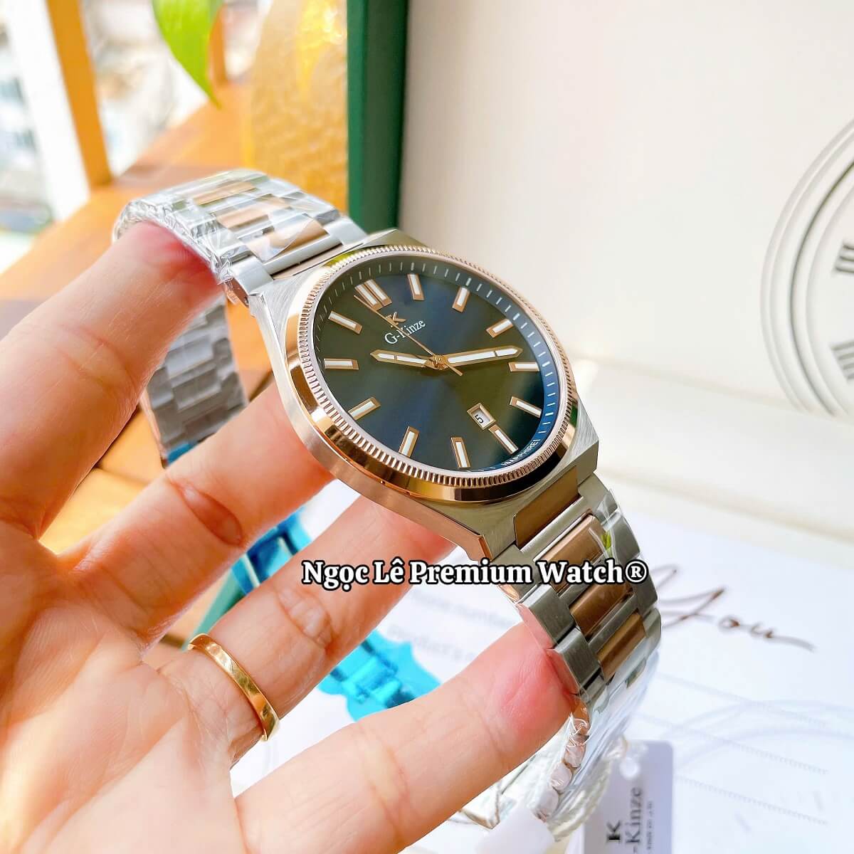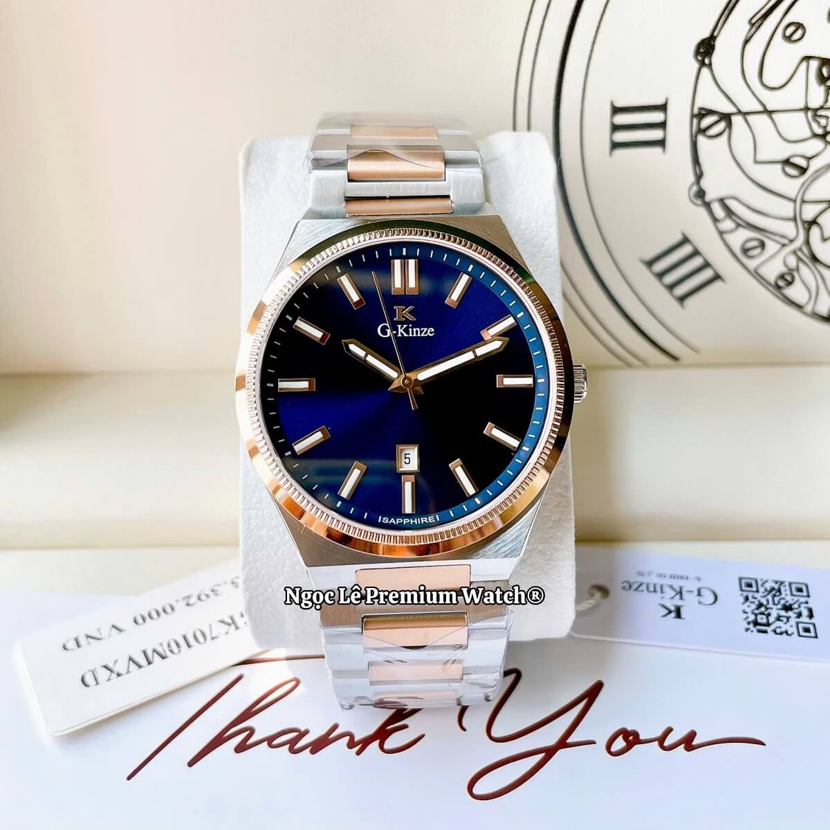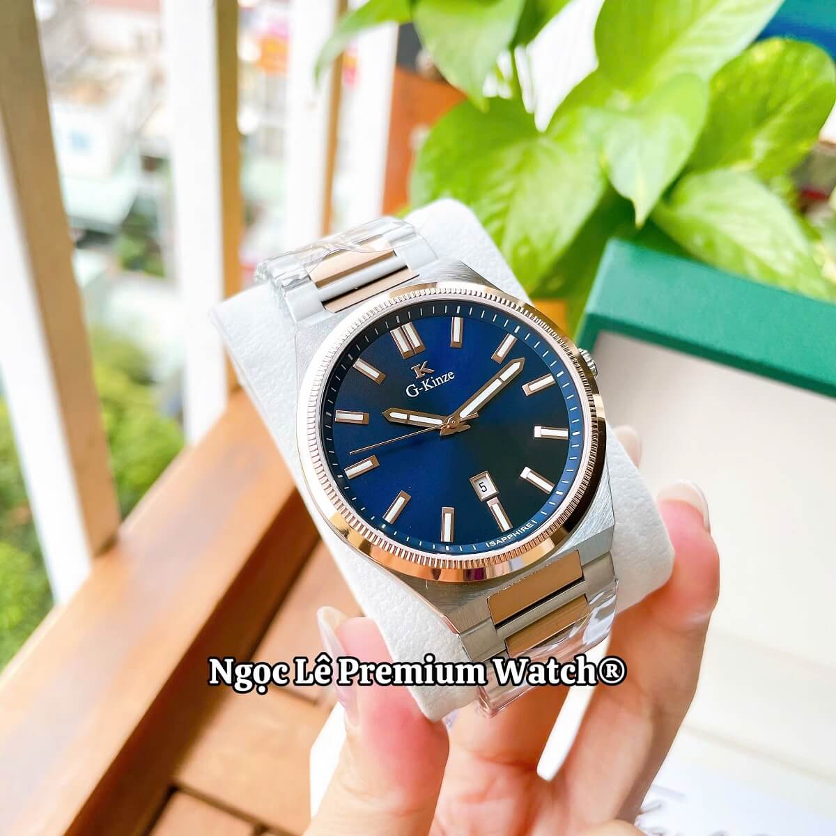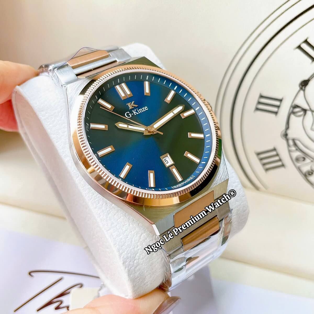 G-Kinze GK7010M phiên bản mặt xanh dương kết hợp cùng dây kim loại demi rose mang phong cách hiện đại, nổi bật nhưng vẫn giữ được nét nam tính và lịch lãm. Tông xanh dương trẻ trung phối màu rose gold tạo điểm nhấn sang trọng, phù hợp cho nam giới đeo hằng ngày, đi làm, đi chơi hay dự tiệc đều rất cuốn hút.