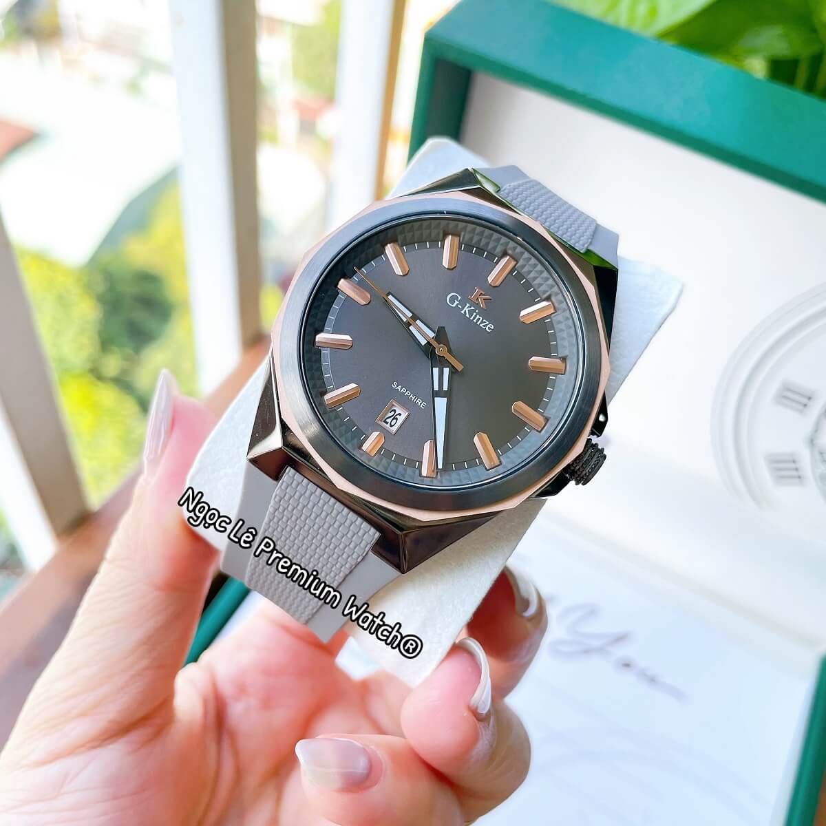 Tại Ngọc Lê Premium Watches, mẫu đồng hồ nam G-Kinze GK7016M mặt xám dây cao su xám vỏ xám size 41mm được kiểm tra kỹ trước khi giao đến tay khách hàng.
