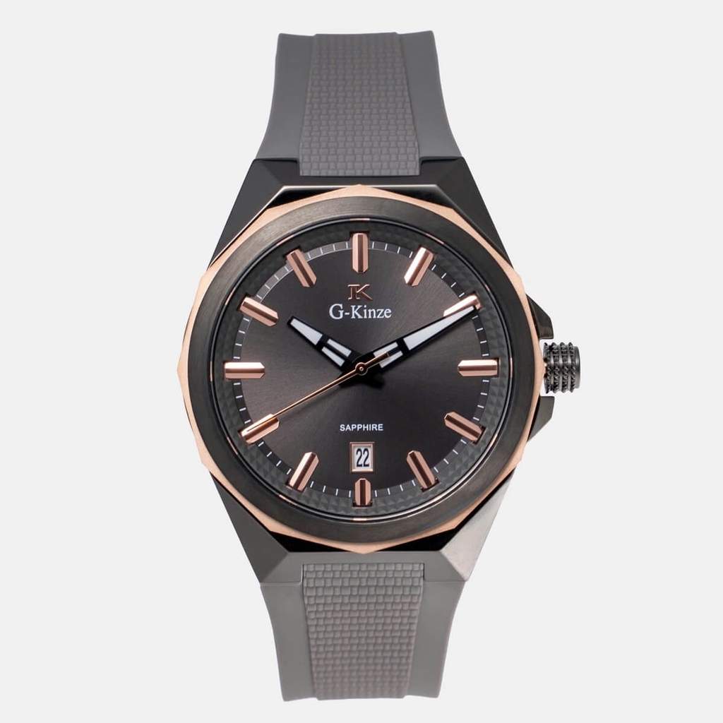 Đồng hồ nam G-Kinze GK7016M mặt xám dây cao su xám vỏ xám size 41mm, kính sapphire chống trầy, máy pin Quartz chính xác, thiết kế thể thao nam tính tại Ngọc Lê Premium Watches.