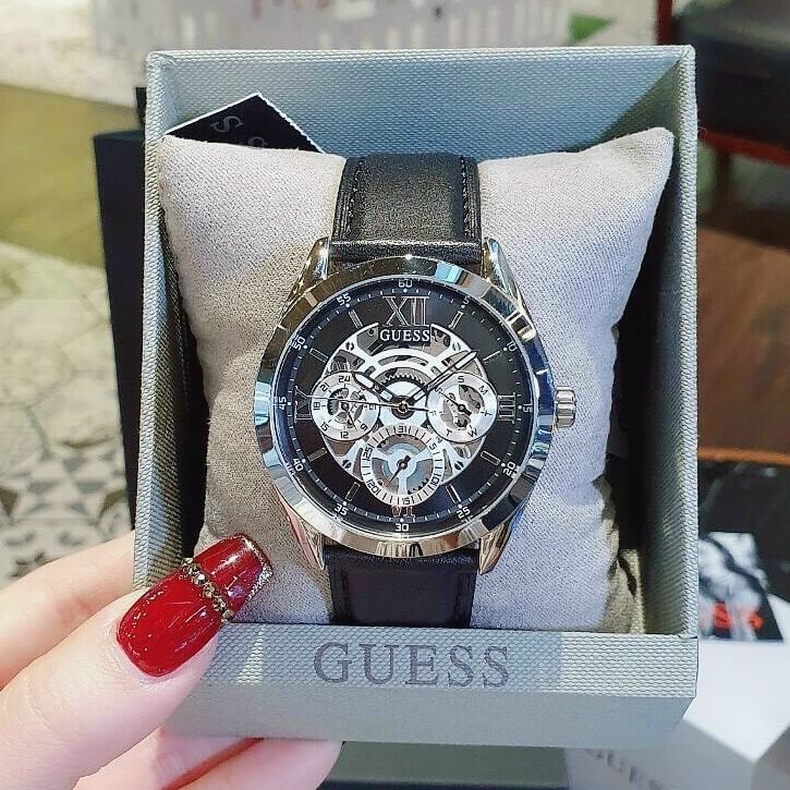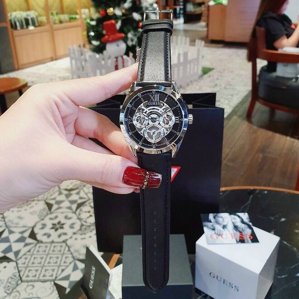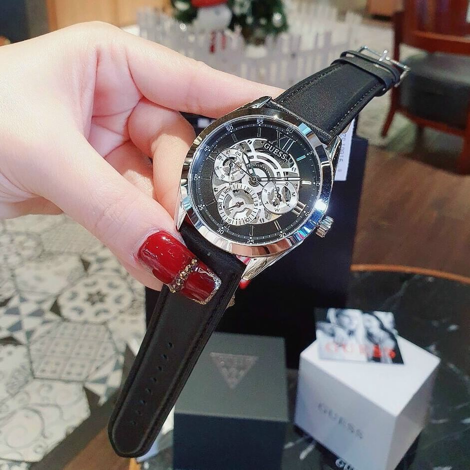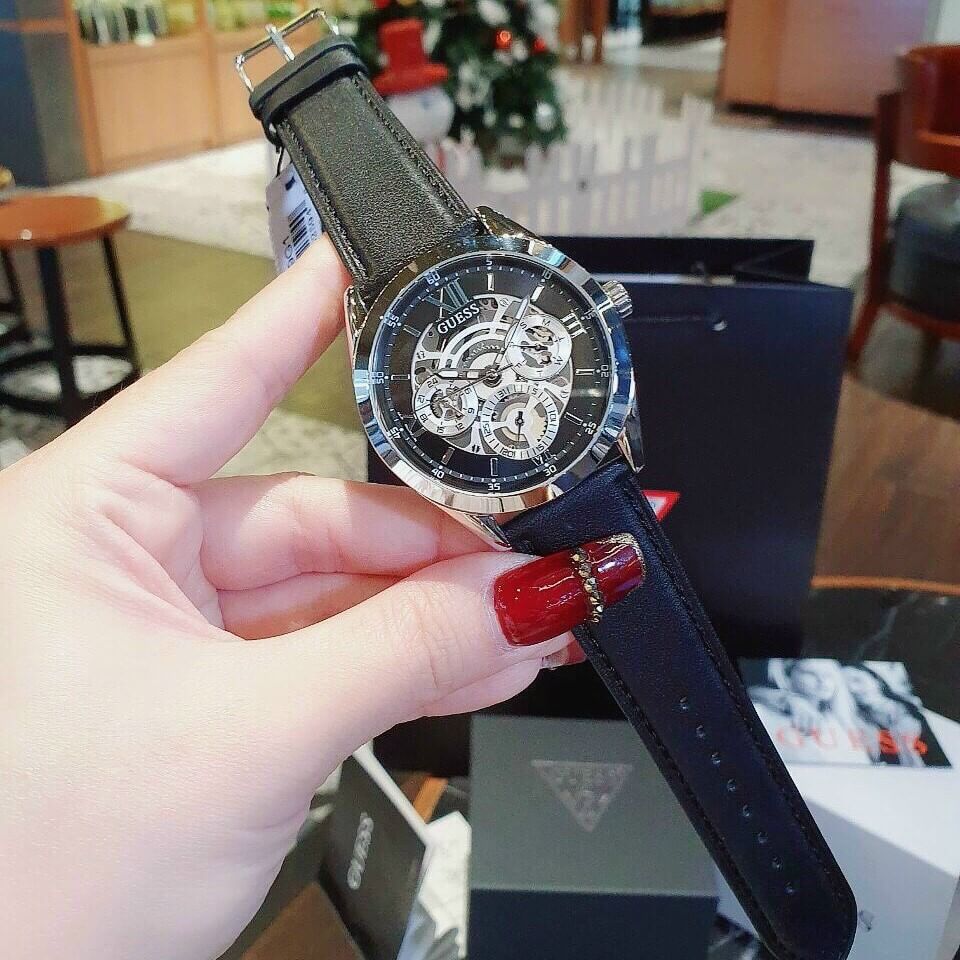 Hình ảnh thực tế Đồng Hồ Nam Guess GW0389G1 Dây Da Đen 42mm Silver