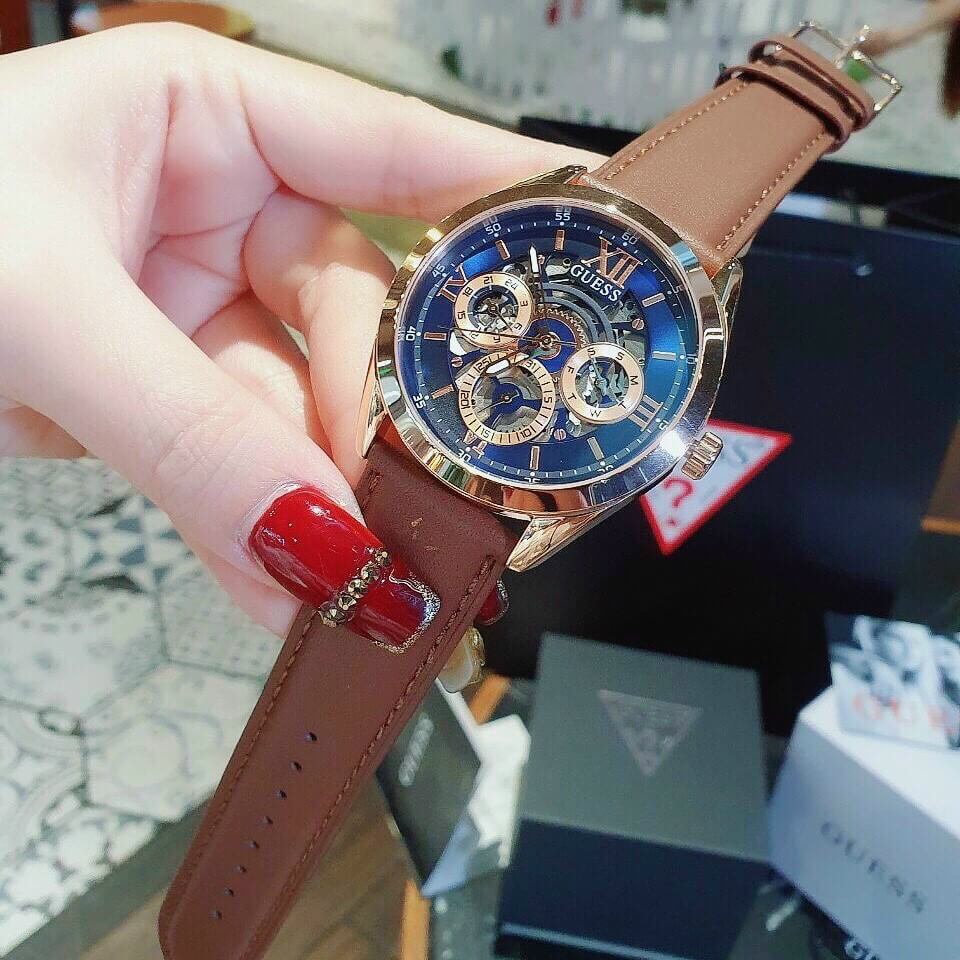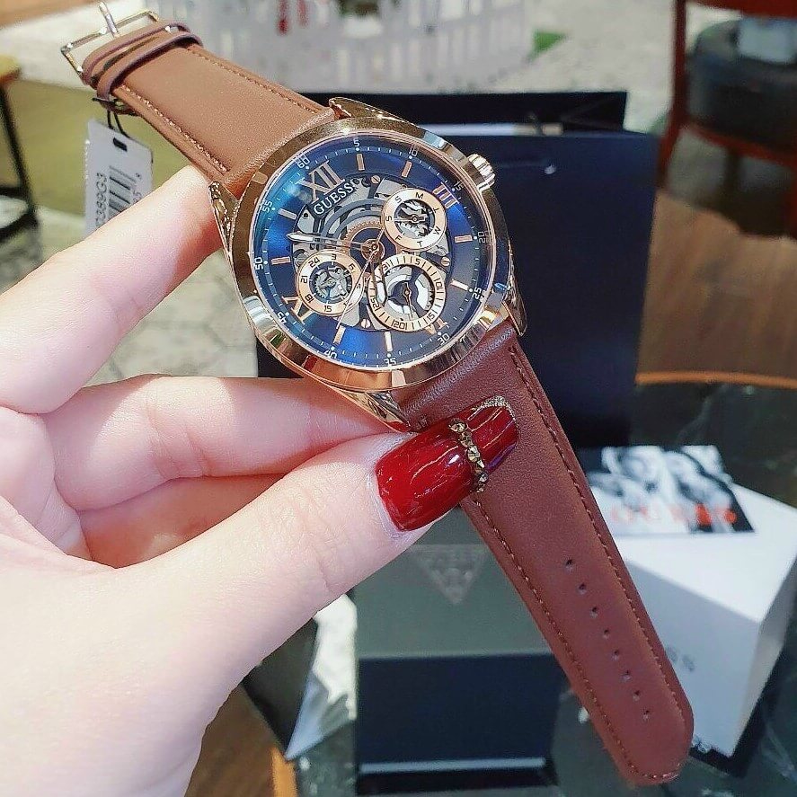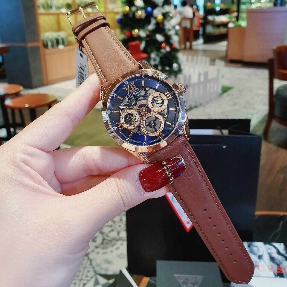 Hình ảnh thực tế Đồng Hồ Nam Guess GW0389G3 Dây Da Nâu 42mm Rose Gold