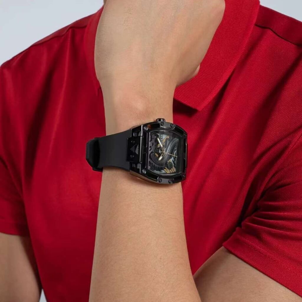 Chất liệu vỏ thép không gỉ với mặt rồng độc đáo, dây silione mềm mại ôm tay