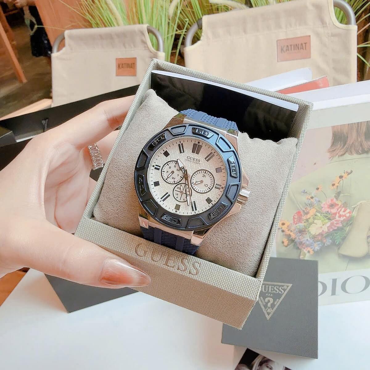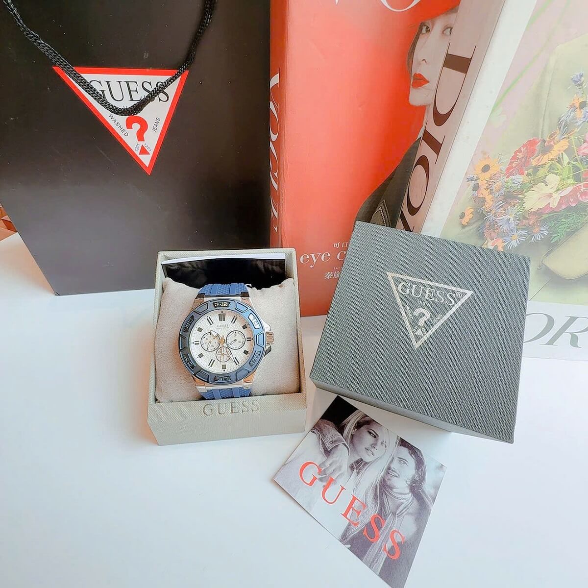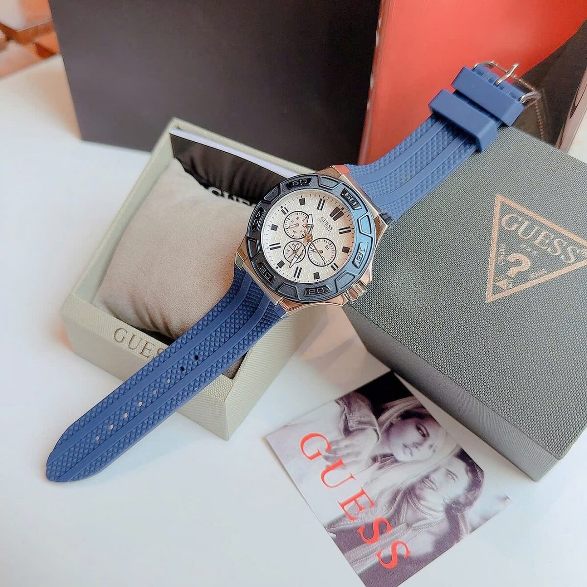 - Sản phẩm bao gồm đầy đủ phụ kiện: Hộp Guess + Túi + Sổ HDSD