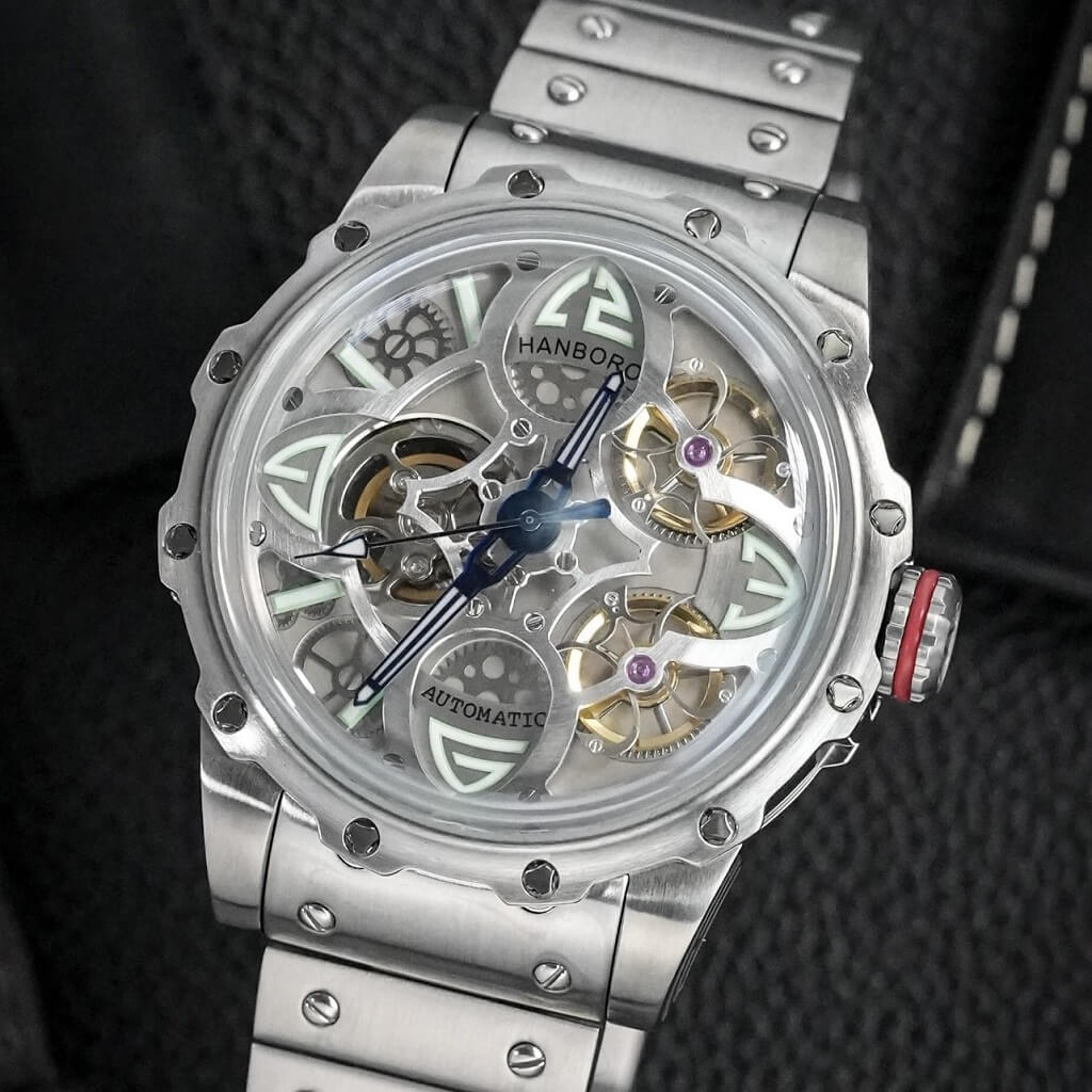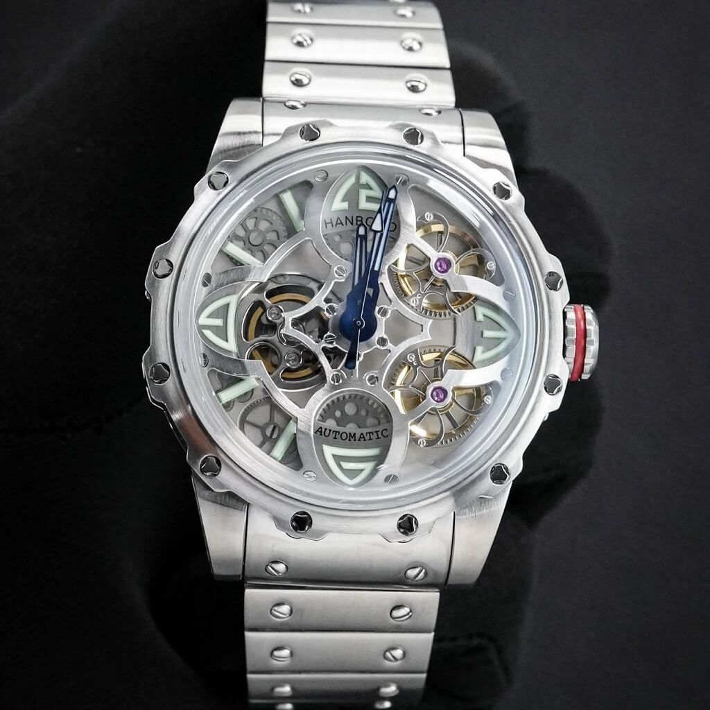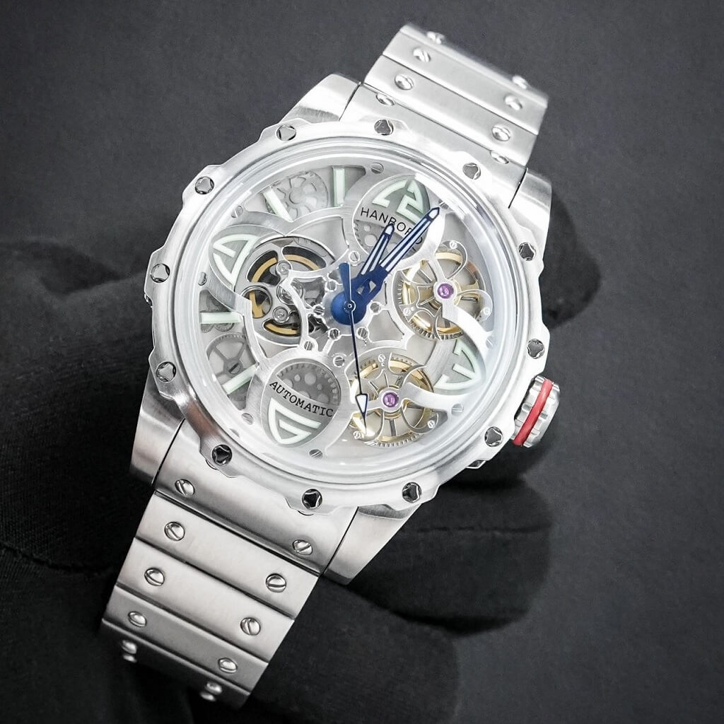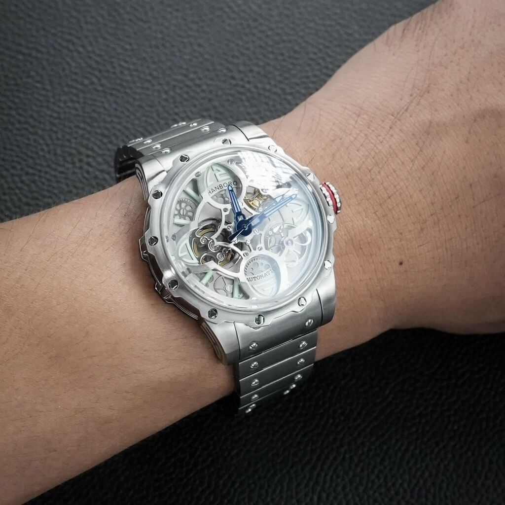 Hình Ảnh Đồng Hồ Nam Hanboro 8853 Máy Tự Động Dây Inox Silver 44mm