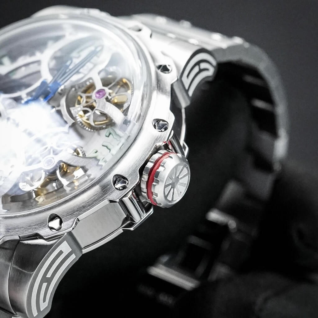 - Thiết kế mặt đồng hồ lộ cơ cả mặt trước và mặt sau đẳng cấp, dạ quang nổi bật