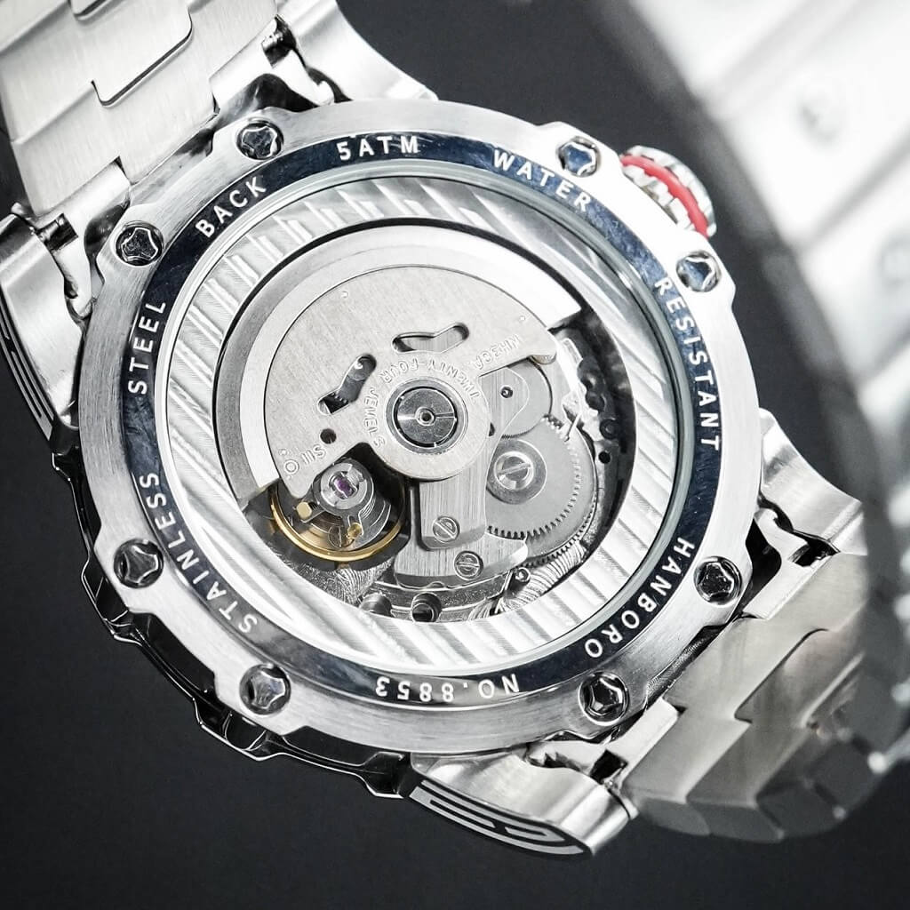 Thông số Đồng Hồ Nam Hanboro 8853 Máy Tự Động Dây Inox Silver 44mm Chính Hãng