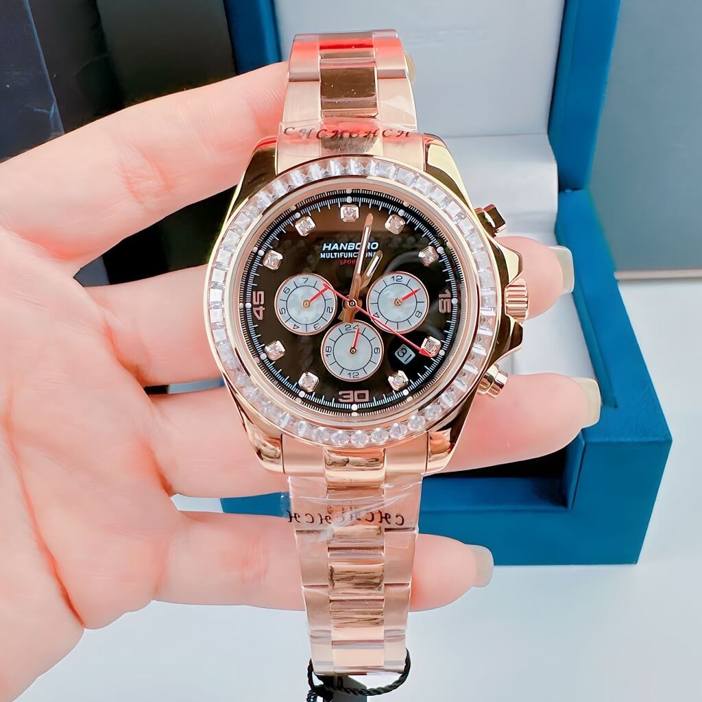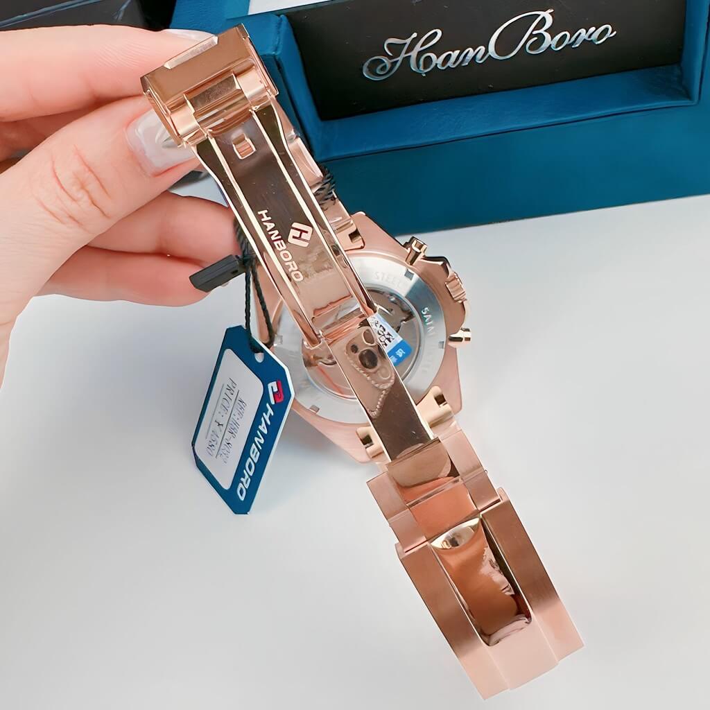 Đặc điểm nổi bật của sản phẩm: Đồng Hồ Nam Hanboro Automatic Crystal Bezel Rose Gold 42mm HB8023