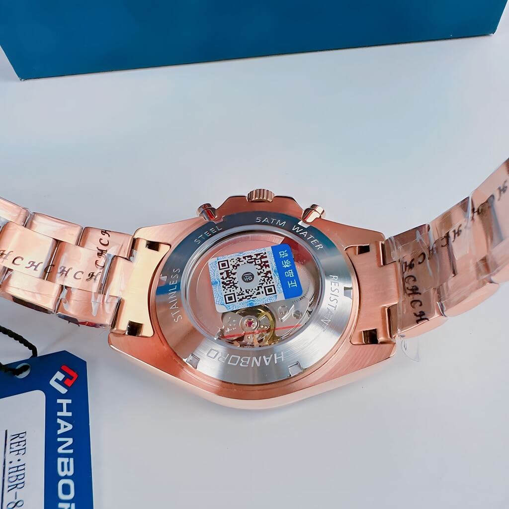 Chính sách bảo hành: Đồng Hồ Nam Hanboro Automatic Crystal Bezel Rose Gold 42mm HB8023