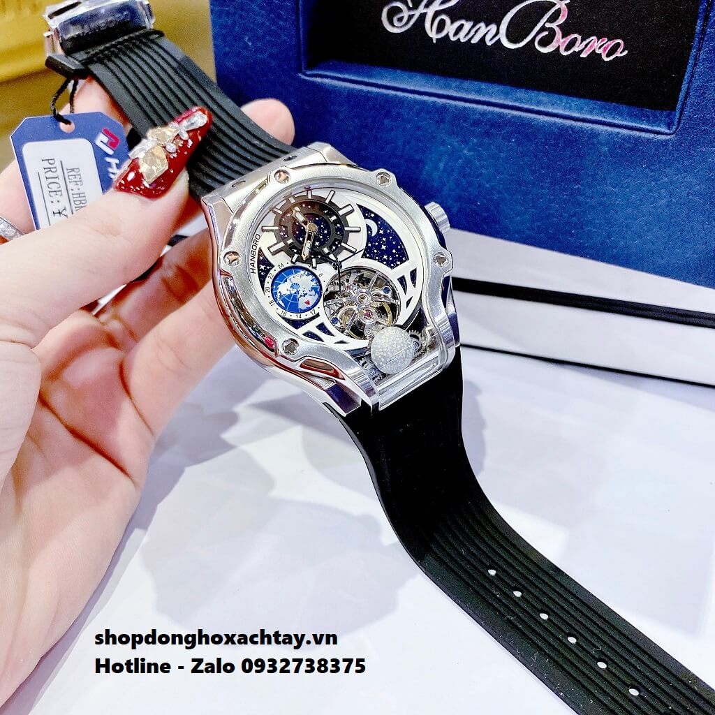 Mô tả những đặc điểm nổi bật nhất của sản phẩm Đồng Hồ Nam Hanboro Automatic Dây Silicon Đen Vỏ Silver 42mm HBR-965
