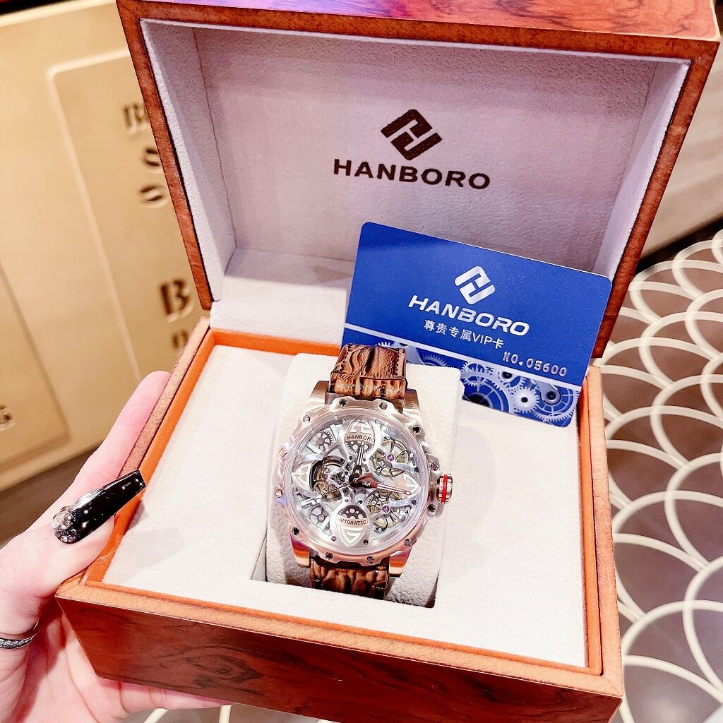 Chính sách bảo hành đồng hồ: Đồng Hồ Nam Hanboro Automatic (Tự Động) Dây Da Nâu Gân Rose Gold 44mm Chính Hãng