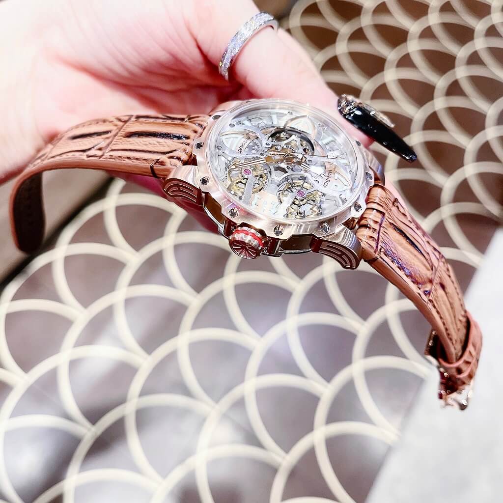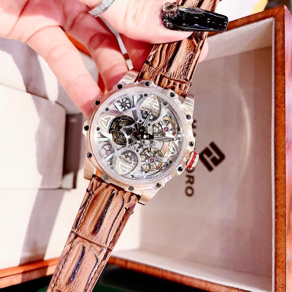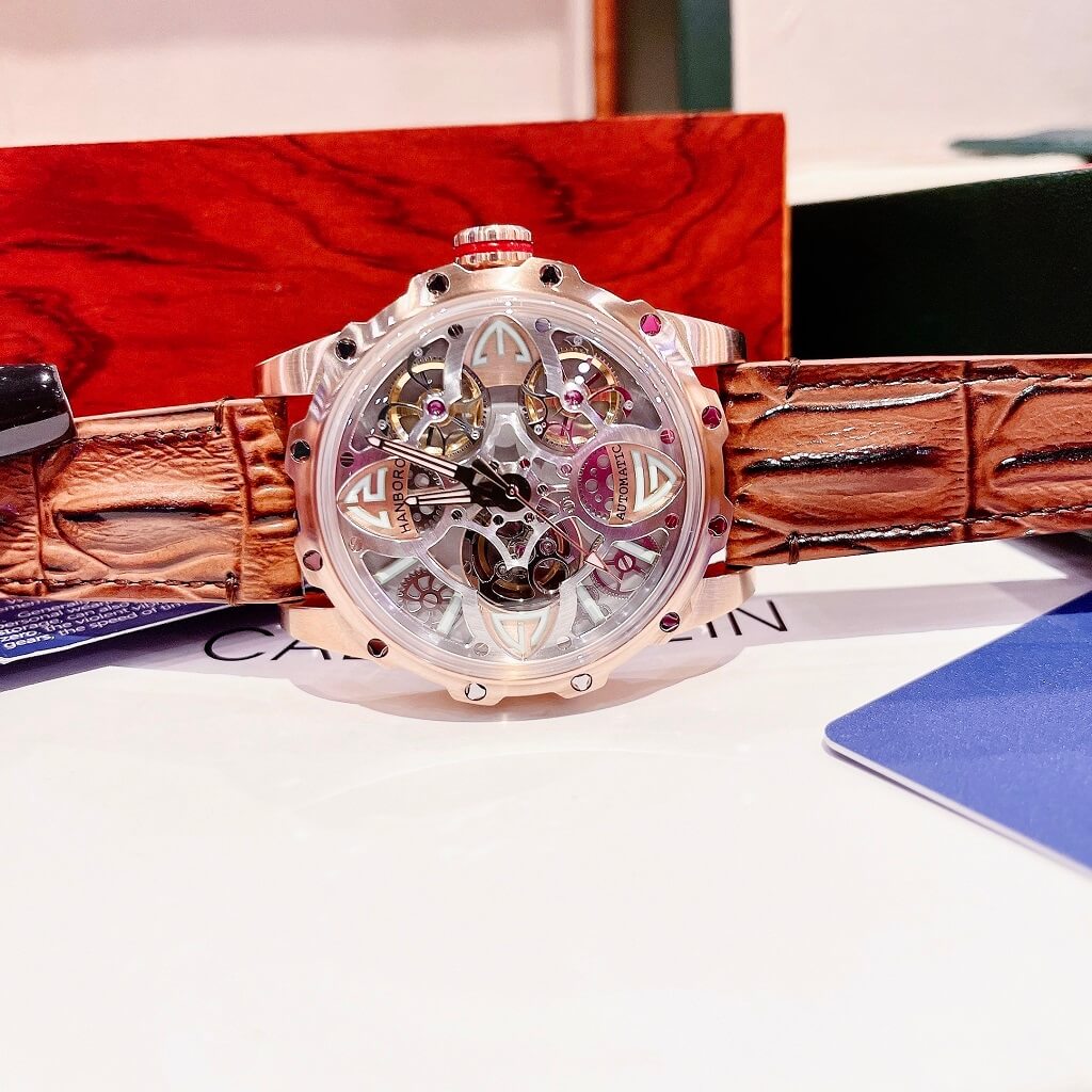 Hình Ảnh Đồng Hồ Nam Hanboro 8851 Automatic (Tự Động) Dây Da Nâu Gân Rose Gold 44mm Chính Hãng