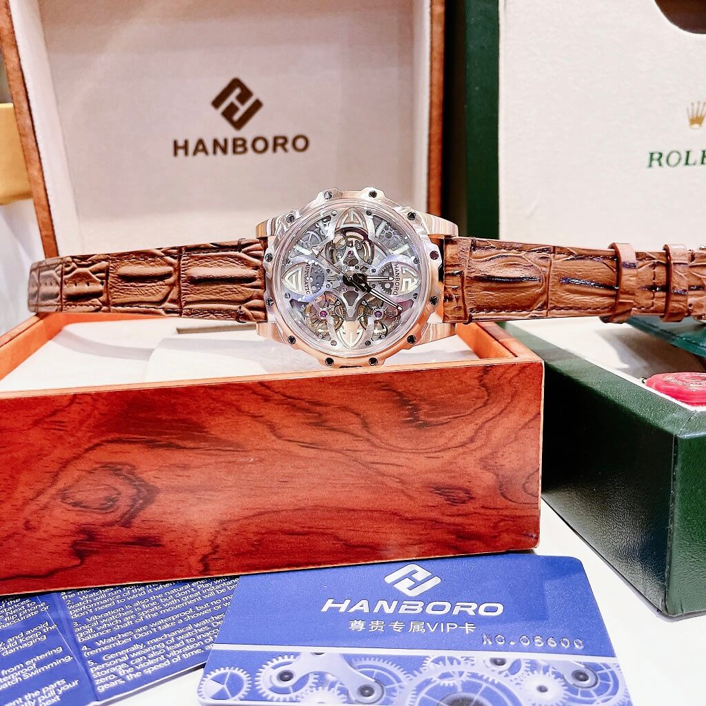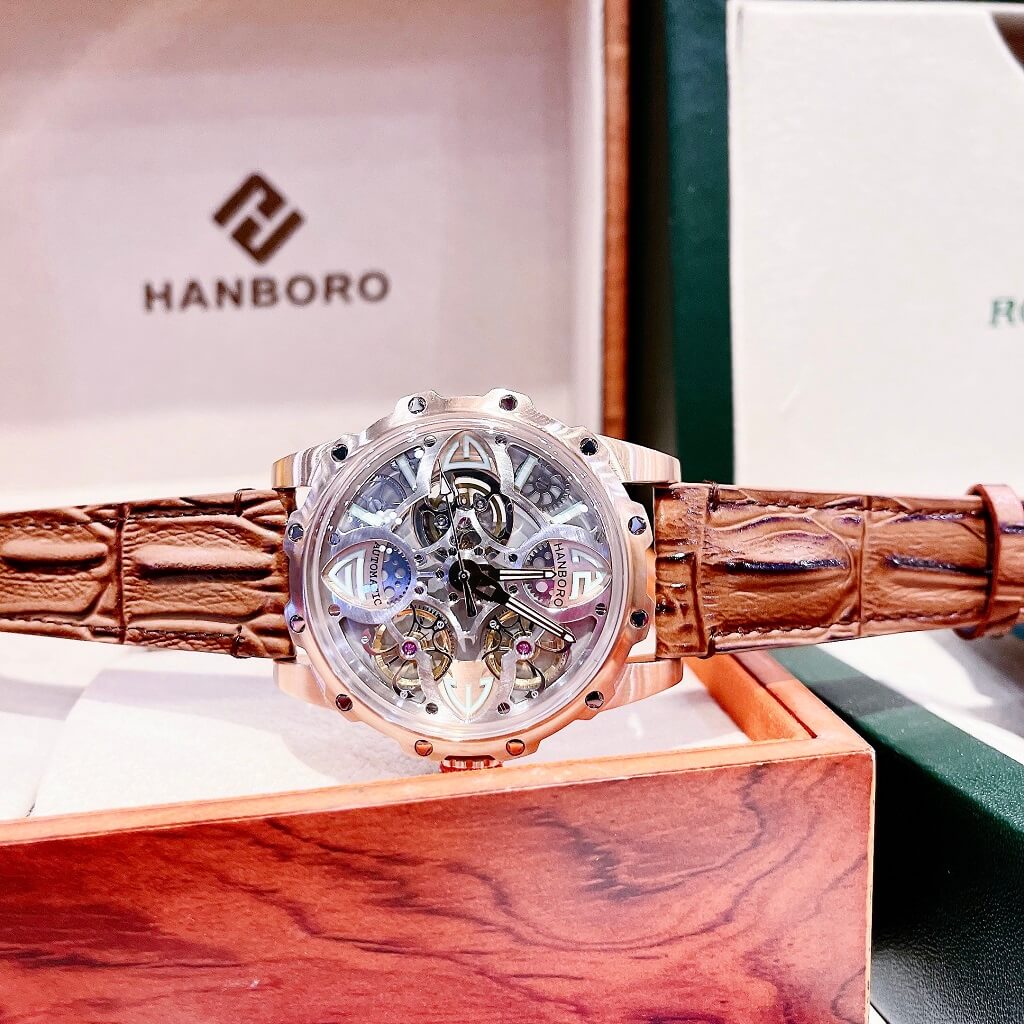 Thông số Đồng Hồ Nam Hanboro 8851 Automatic (Tự Động) Dây Da Nâu Gân Rose Gold 44mm Chính Hãng