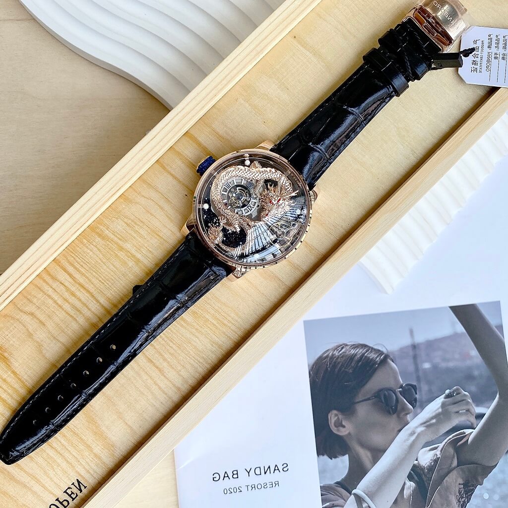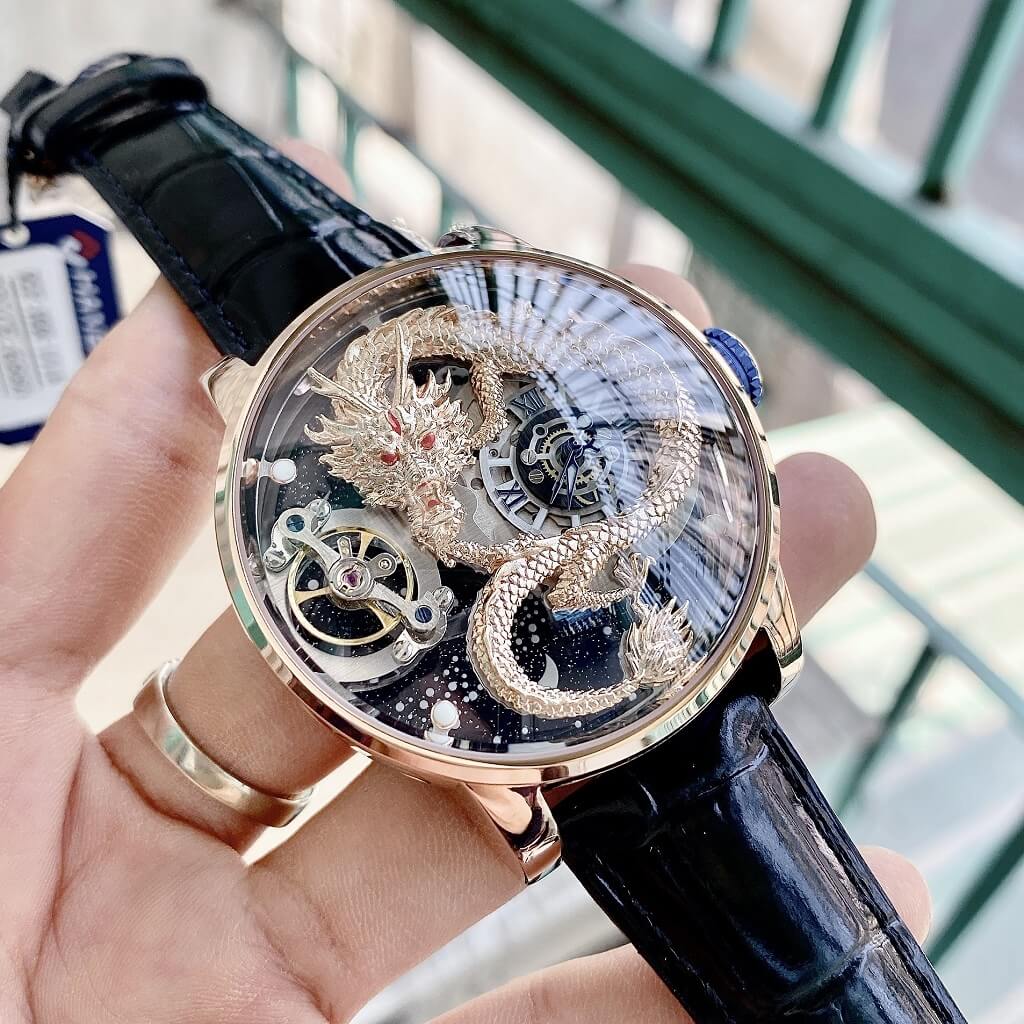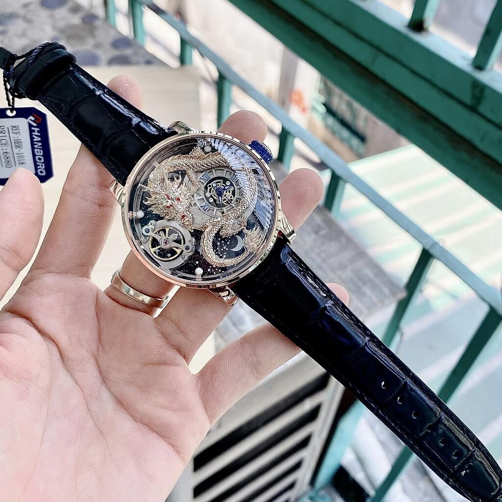 Hình Ảnh Đồng Hồ Nam Hanboro Rồng Máy Tự Động Dây Da Vỏ Rose Gold 44mm
