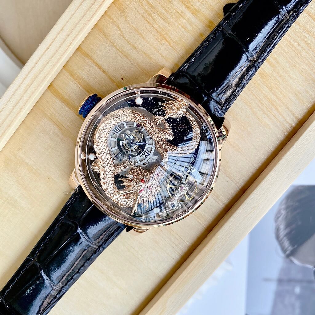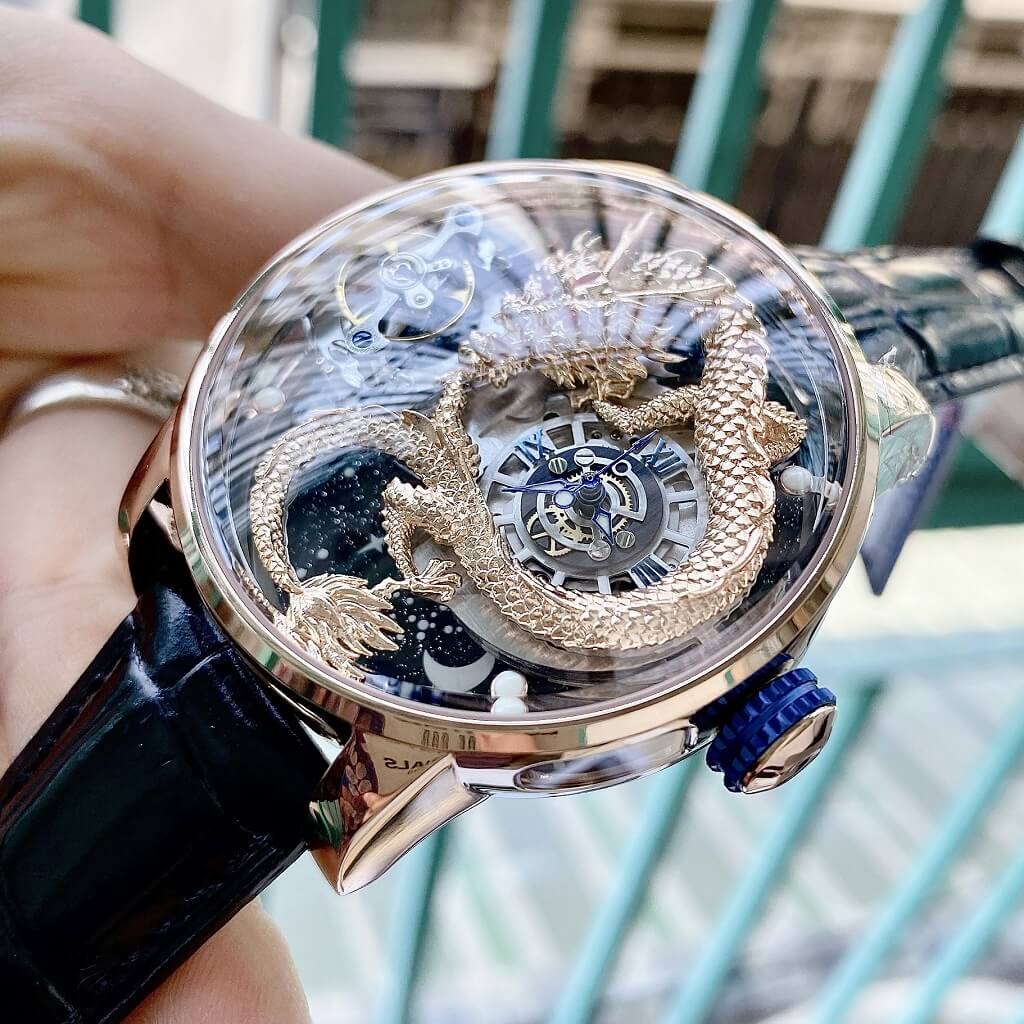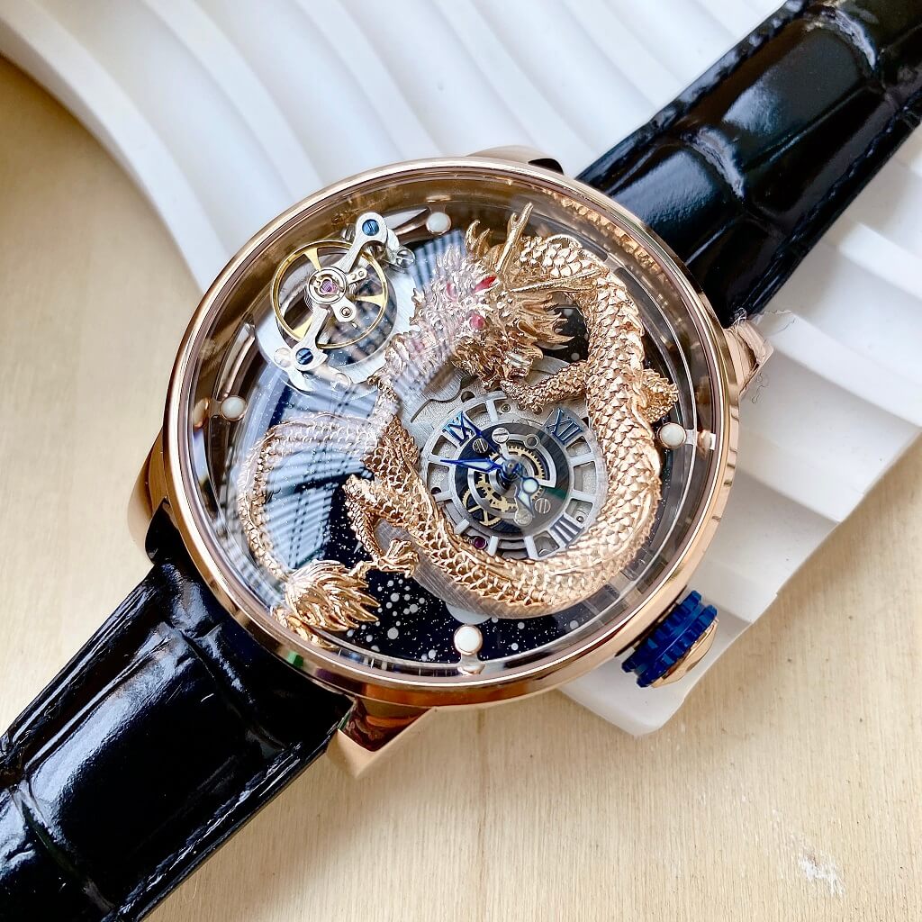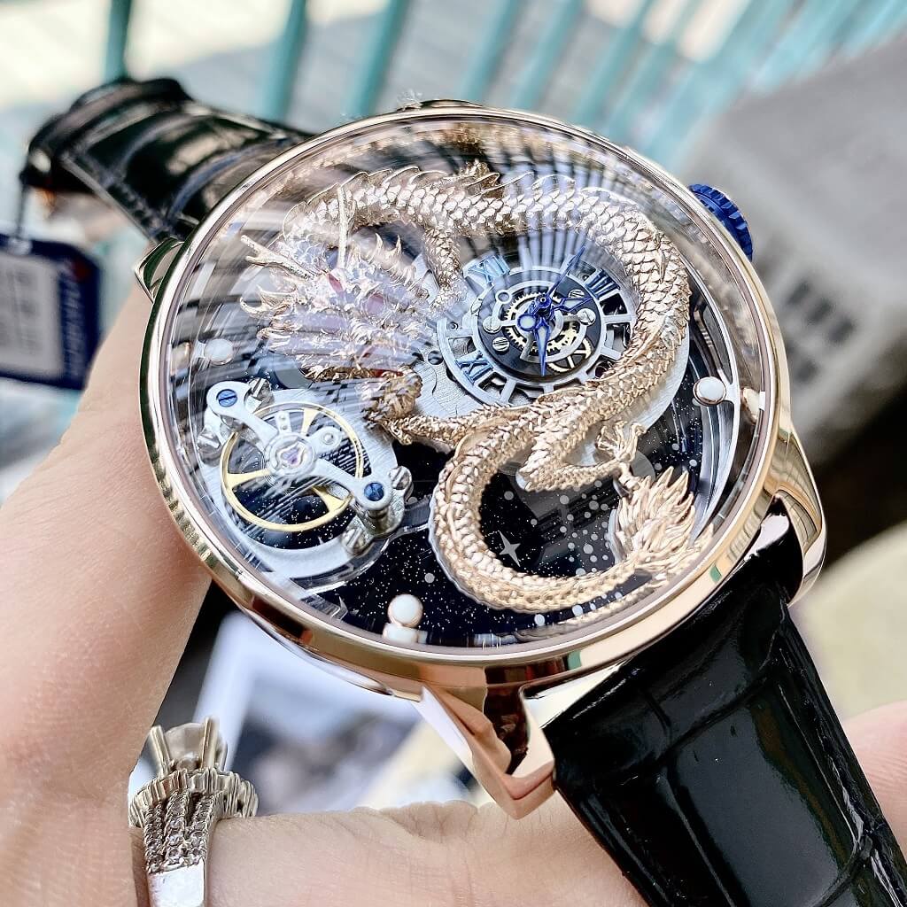 Hình Ảnh Đồng Hồ Nam Hanboro Rồng Máy Tự Động Dây Da Vỏ Rose Gold 44mm