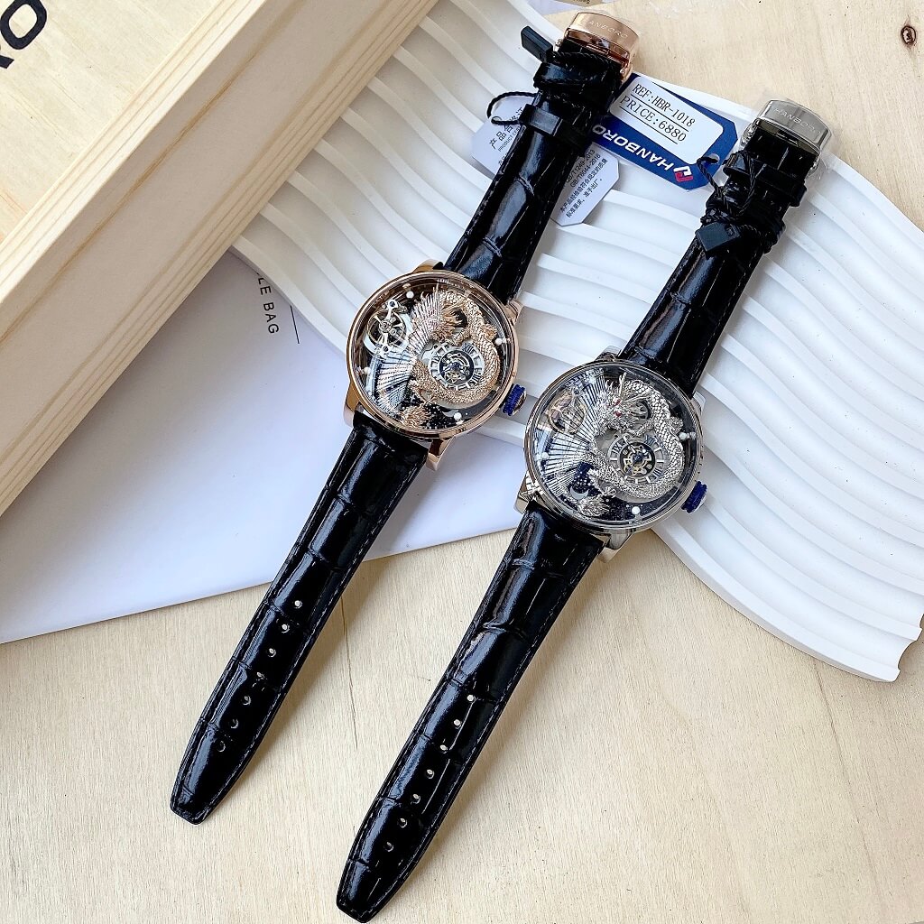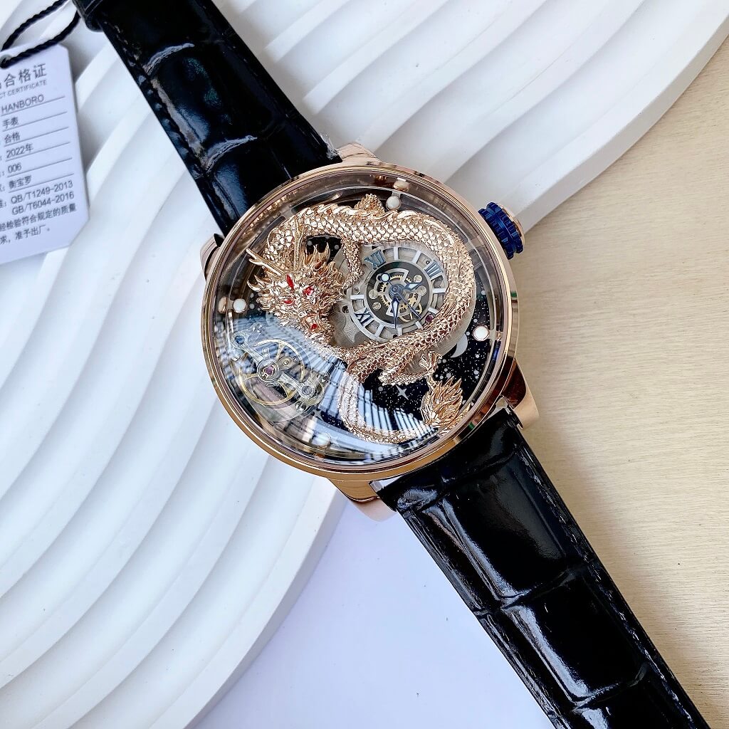 Thông số Đồng Hồ Nam Hanboro Rồng Máy Tự Động Dây Da Vỏ Rose Gold 44mm Chính Hãng