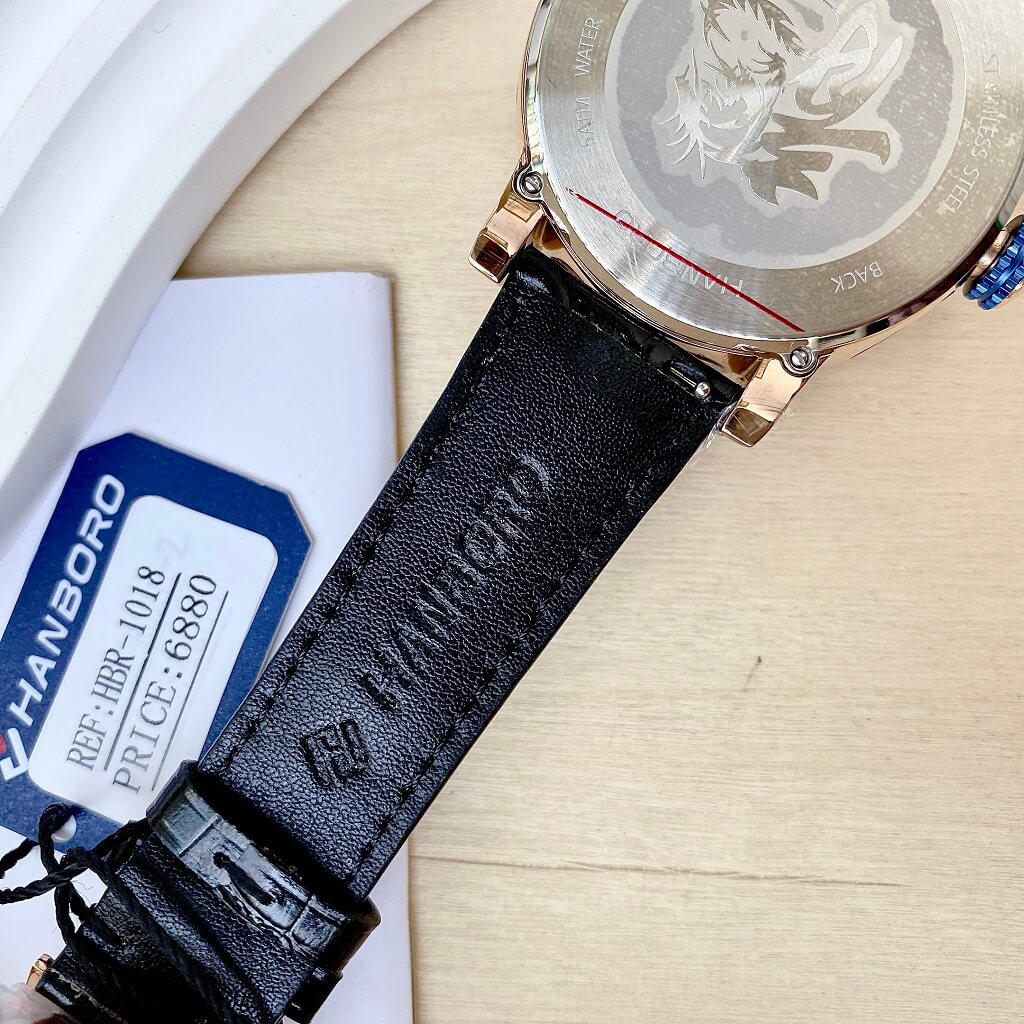 - Đồng hồ Hanboro dây da chính hãng dành cho nam, máy cơ tự động Japan bền bỉ