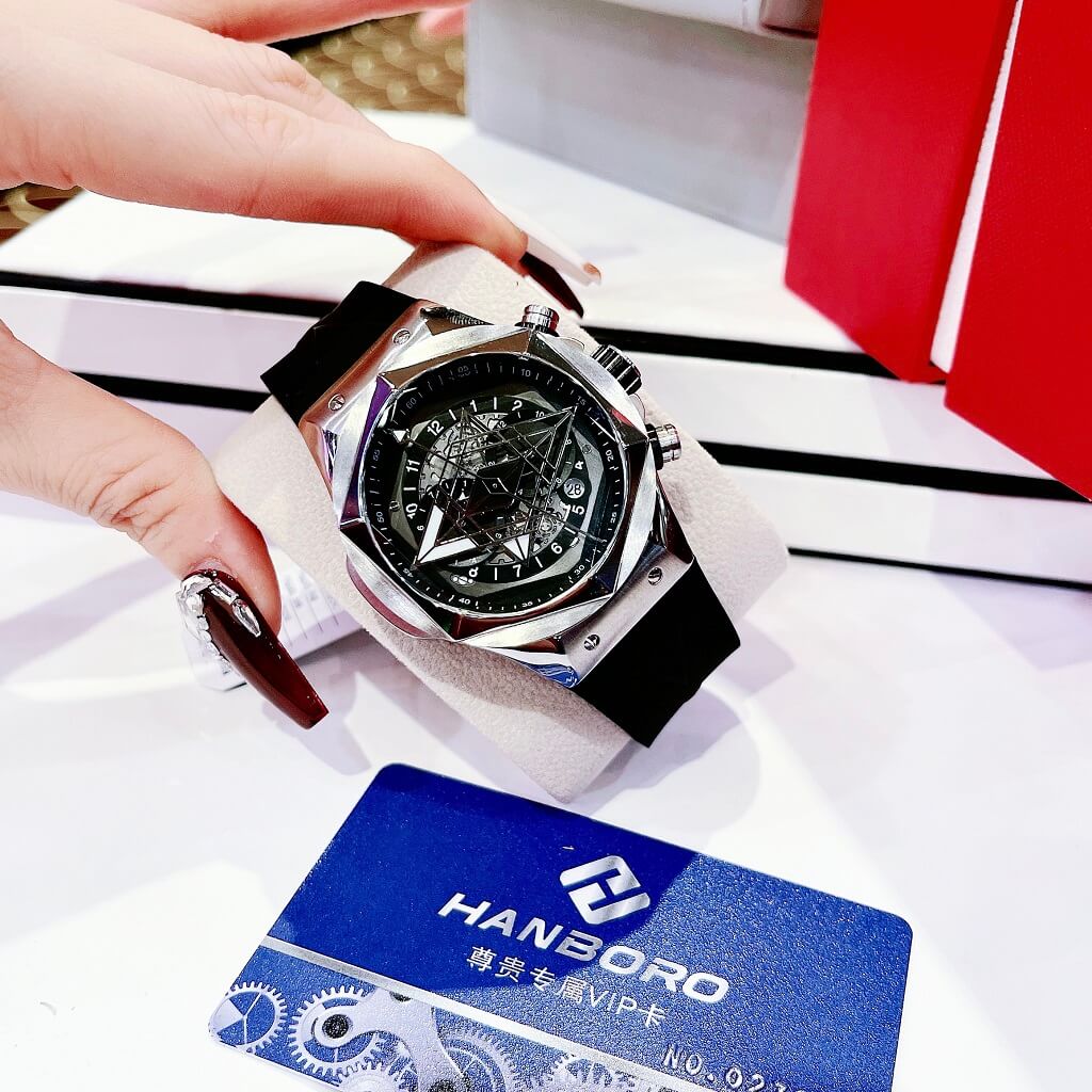Chính sách bảo hành đồng hồ: Đồng Hồ Nam Hanboro Tự Động Dây Cao Su Đen Silver 42mm