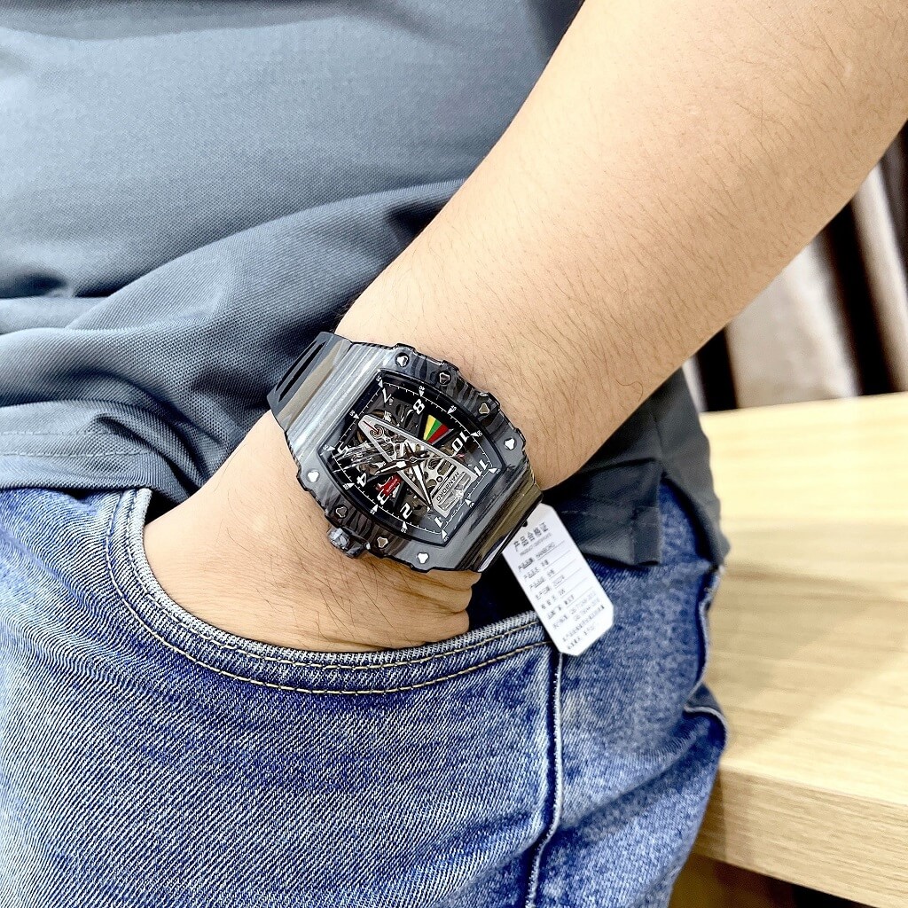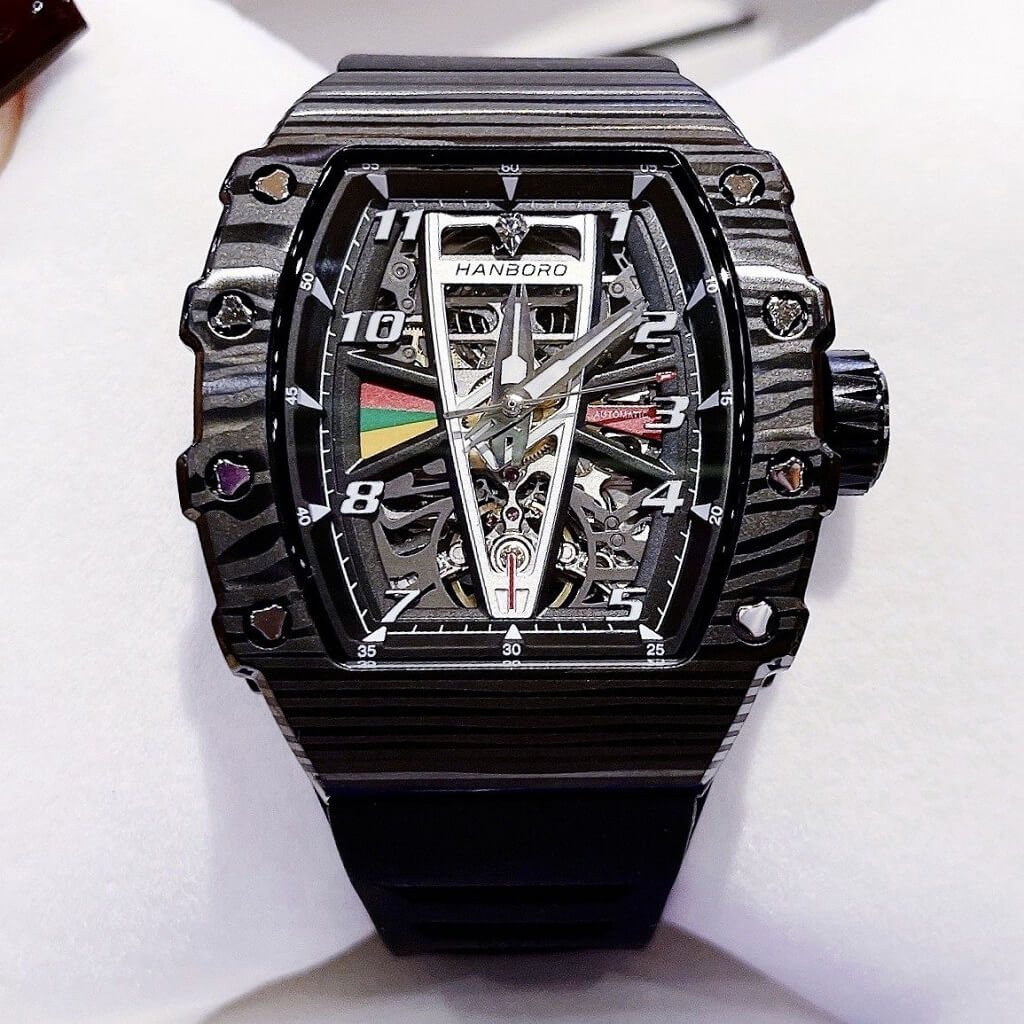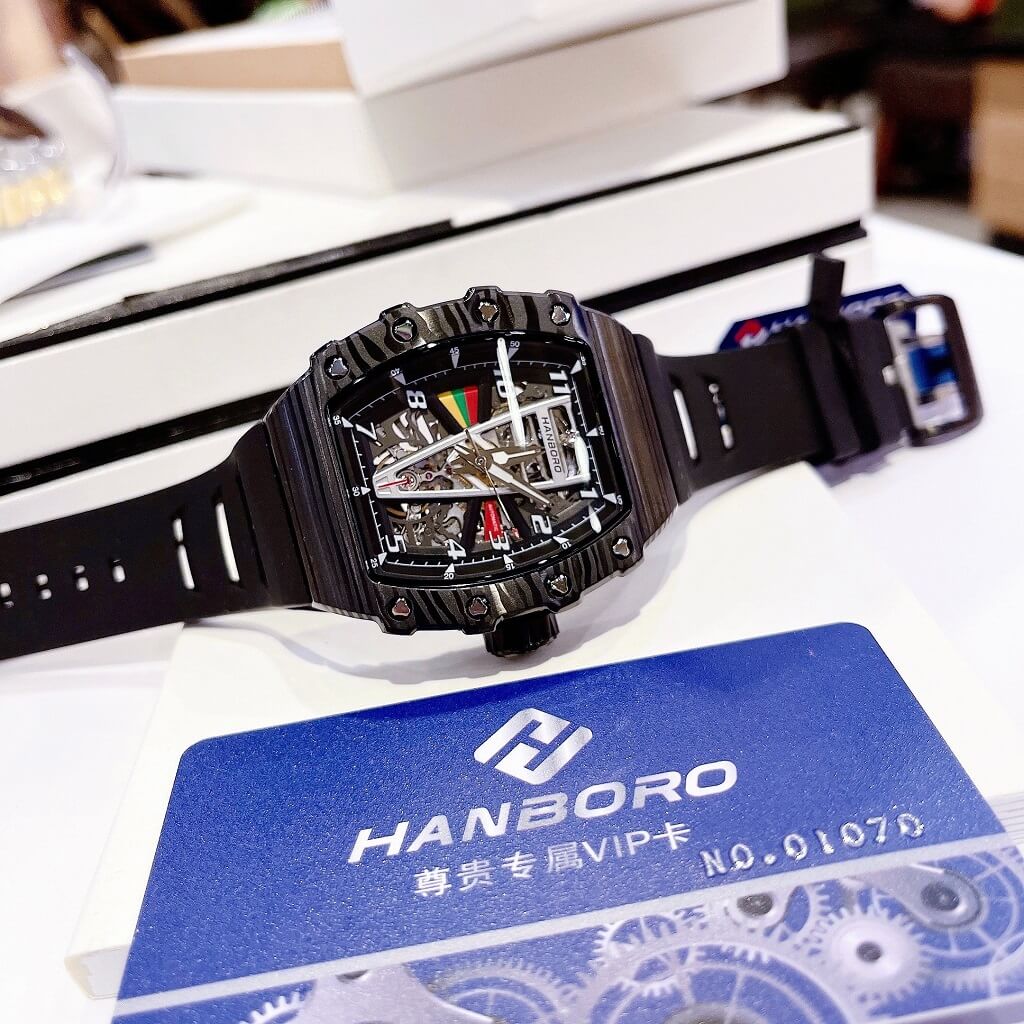 - Đồng hồ Hanboro dây silicone chính hãng dành cho nam, máy cơ tự động Japan bền bỉ