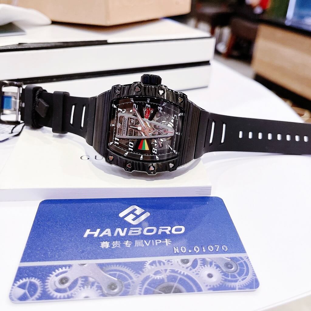 Chính sách bảo hành đồng hồ: Đồng Hồ Nam Hanboro Tự Động Dây Silicone Đen Vỏ Đen 41x50mm HBR 983