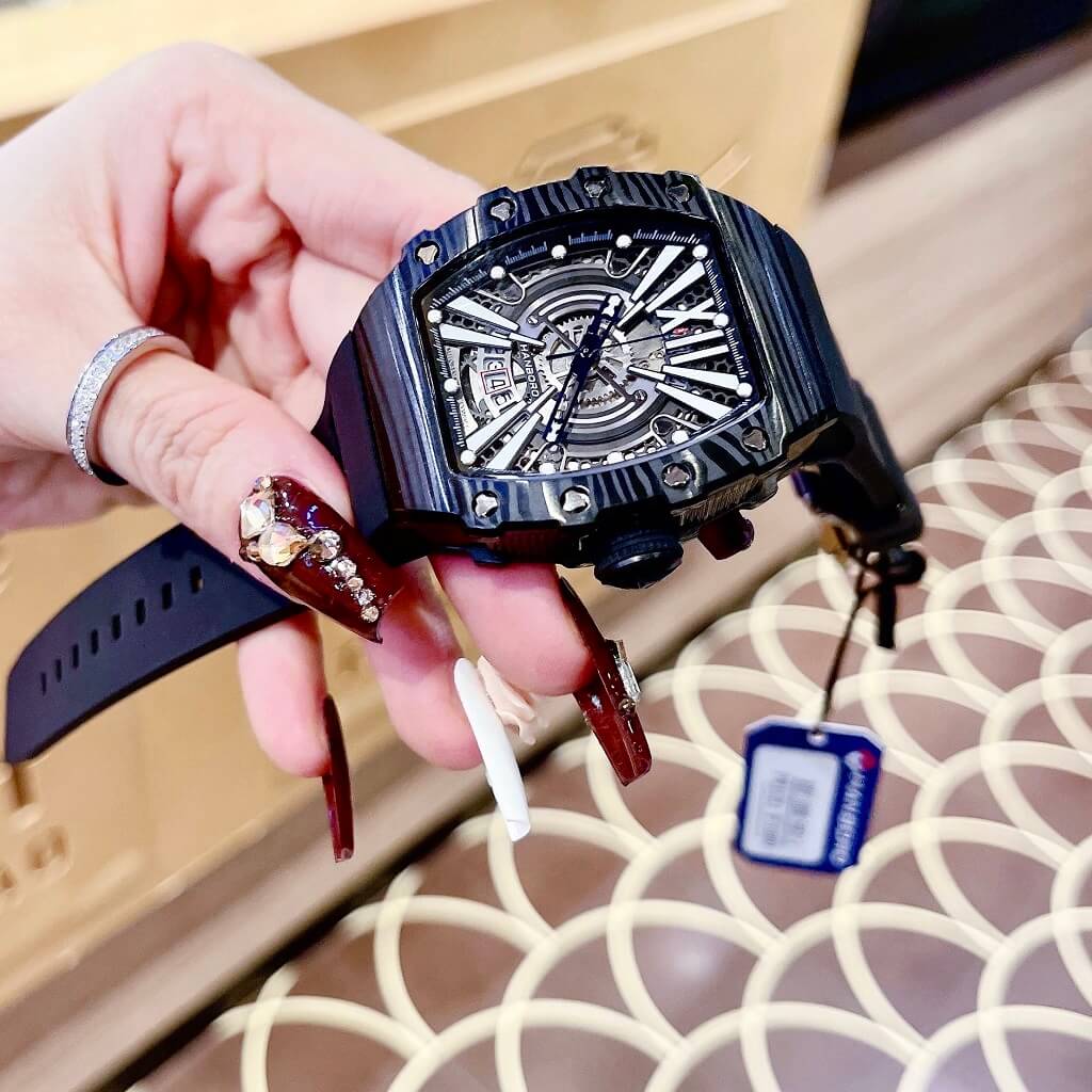 Hình Ảnh Đồng Hồ Nam Hanboro Tự Động Dây Silicone Đen Vỏ Đen 41x50mm HBR 993
