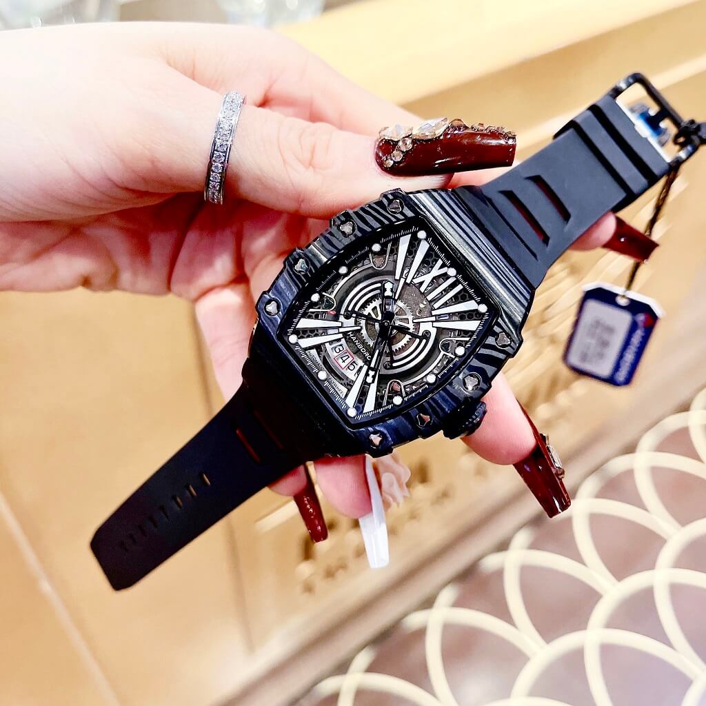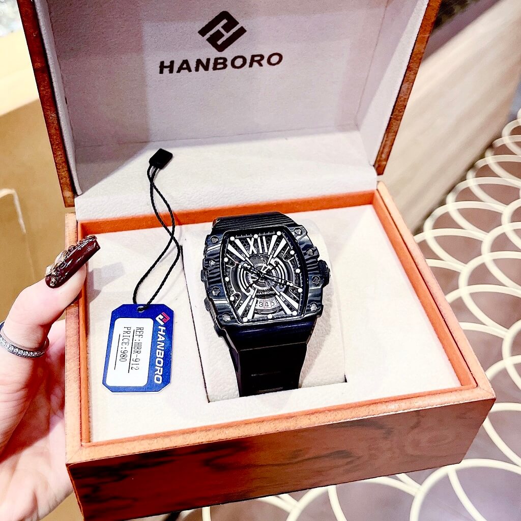 - Đồng hồ Hanboro dây silicone chính hãng dành cho nam, máy cơ tự động Japan bền bỉ