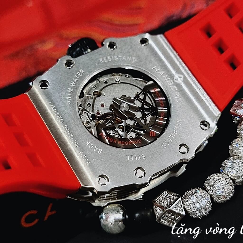 Chính sách bảo hành đồng hồ: Đồng Hồ Nam Hanboro Tự Động Dây Silicone Đỏ Vỏ Silver 41x50mm HBR 927