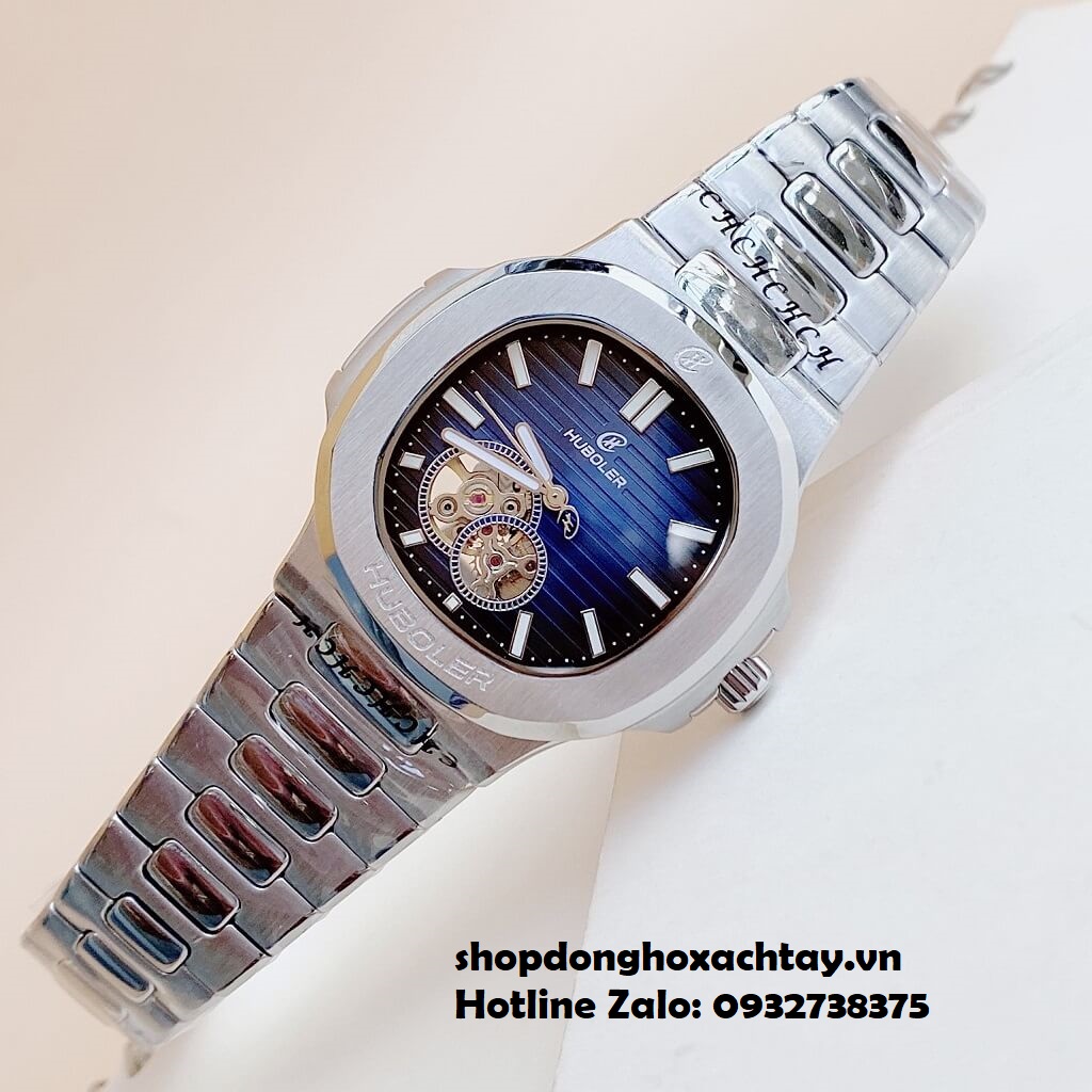 Hình Ảnh Đồng Hồ Nam Huboler 88020 Máy Tự Động Mặt Xanh Vỏ Silver 40mm