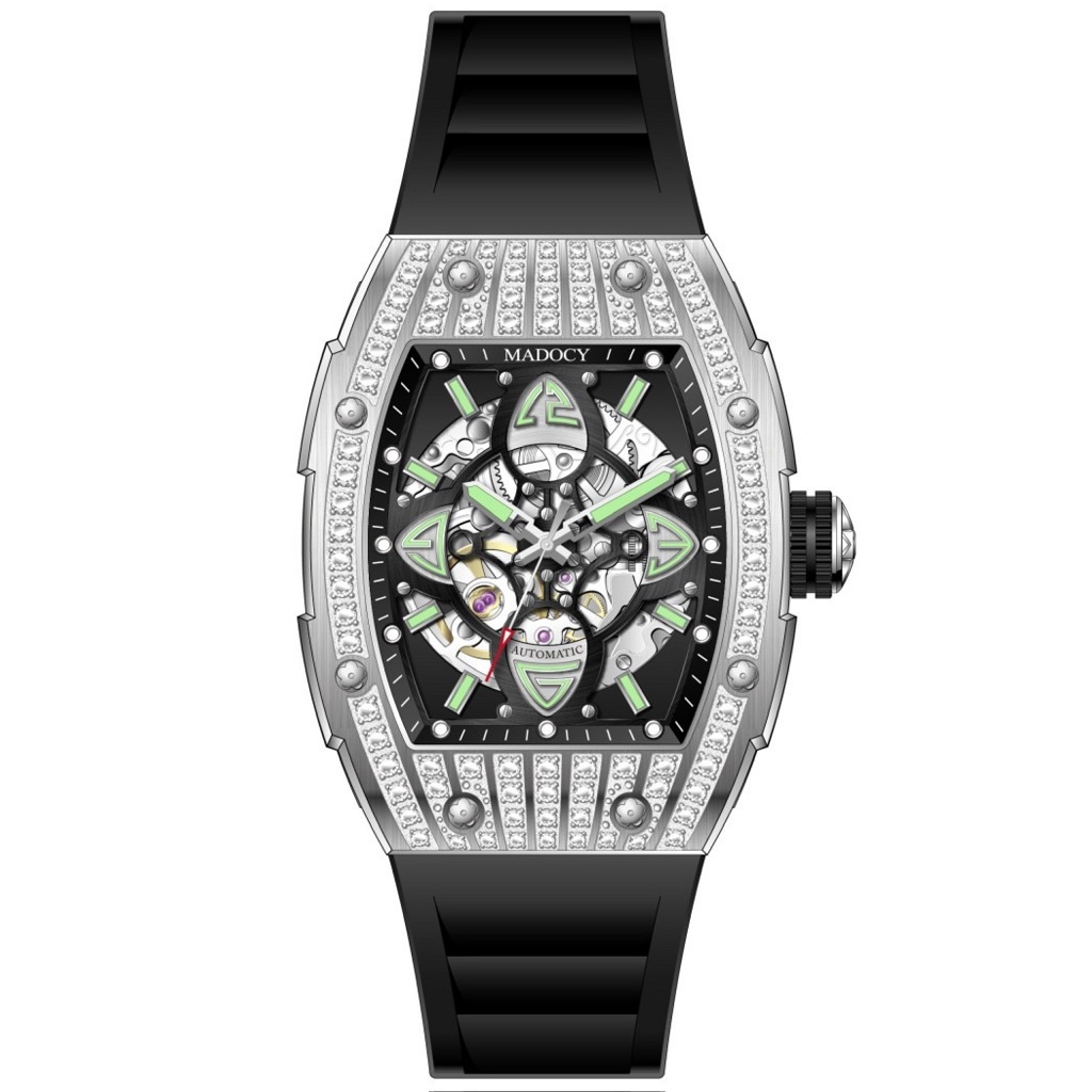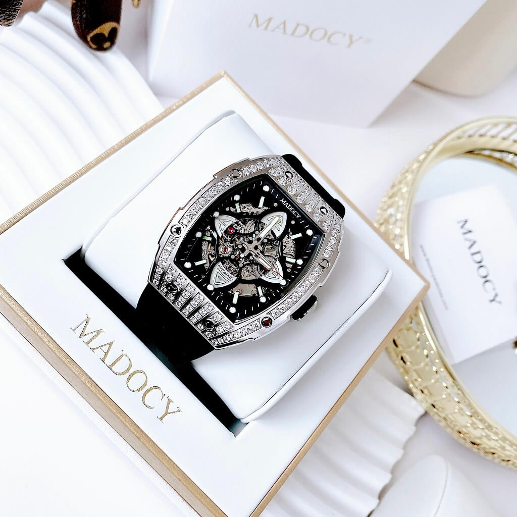Đồng hồ nam chính hãng Mỹ MADOCY tự động với dây silicone mềm mại ôm tay