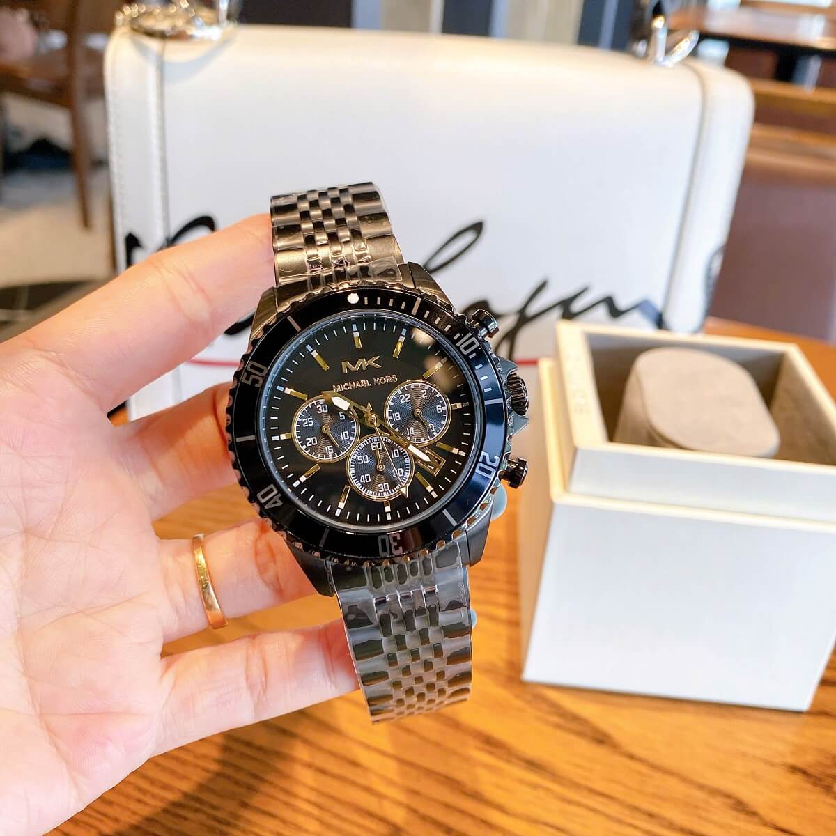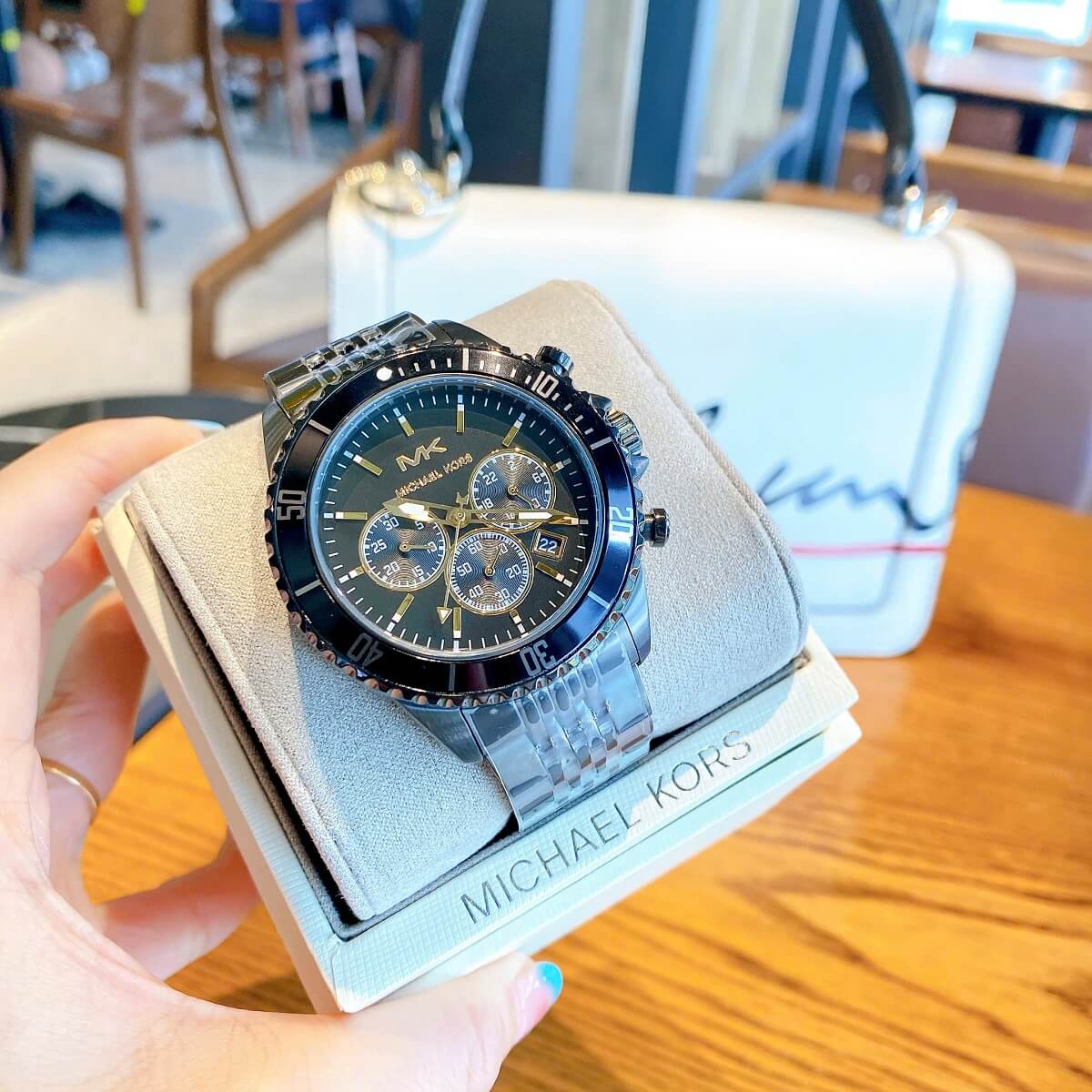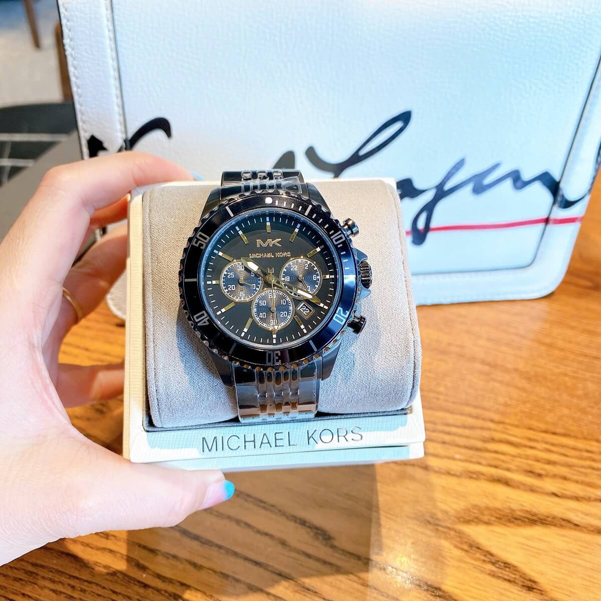 Mẫu đồng hồ Michael Kors Bayville MK8750 sở hữu thiết kế mạnh mẽ, lịch lãm với phần vỏ đen nam tính, dễ dàng phối cùng nhiều phong cách thời trang khác nhau. Kích thước mặt 44mm chuẩn form tay nam cùng dây thép không gỉ mang lại cảm giác chắc chắn, sang trọng.