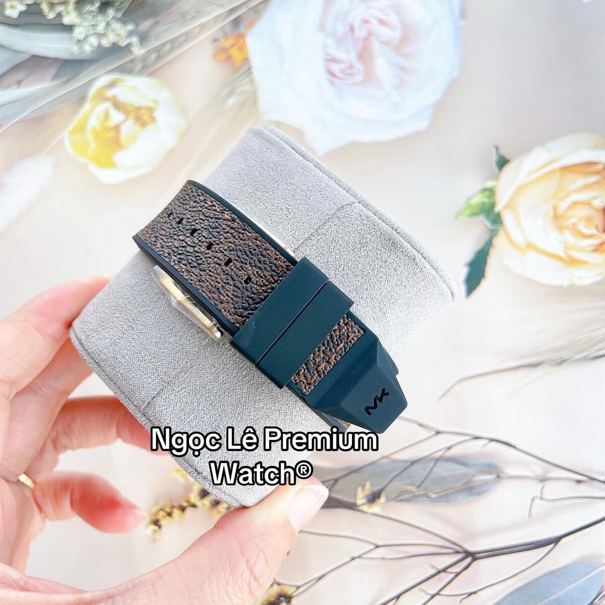 - Dây bằng cao su nâu mềm mại bền bỉ ôm tay, tông màu đen gold mang rất sang trọng