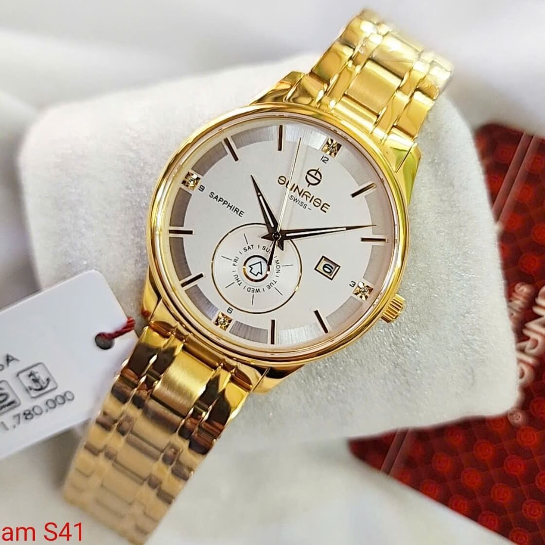 Mẫu đồng hồ Sunrise 1137SA sở hữu dây kim loại màu vàng, mang đến một vẻ đẹp sang trọng và quý phái. Dây kim loại này không chỉ có tính thẩm mỹ cao mà còn đảm bảo độ bền lâu dài, giúp người đeo cảm thấy thoải mái và tự tin trong suốt cả ngày dài. Dây kim loại vàng cũng rất dễ phối hợp với nhiều loại trang phục khác nhau, từ những bộ đồ công sở trang trọng đến những bộ trang phục dạo phố năng động.