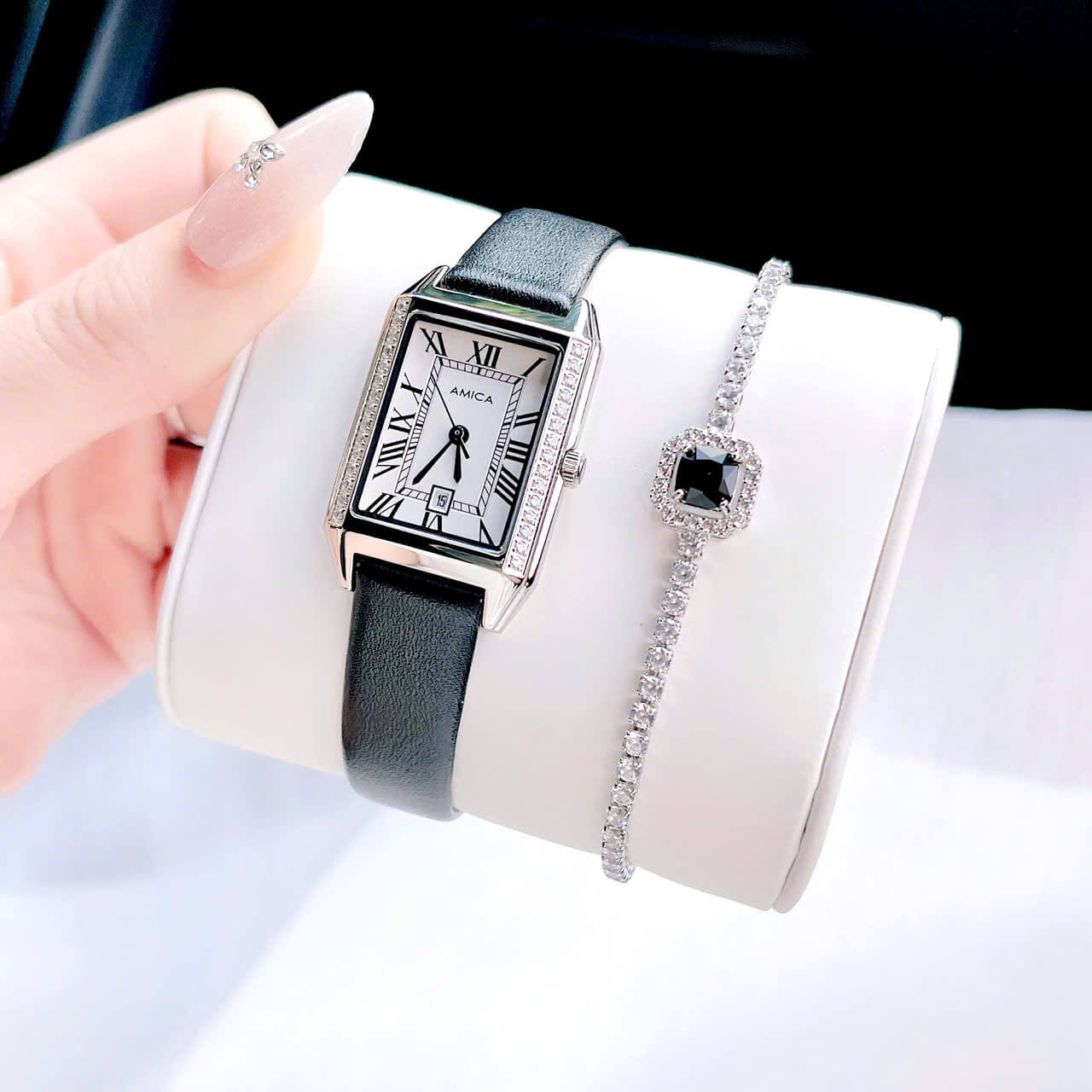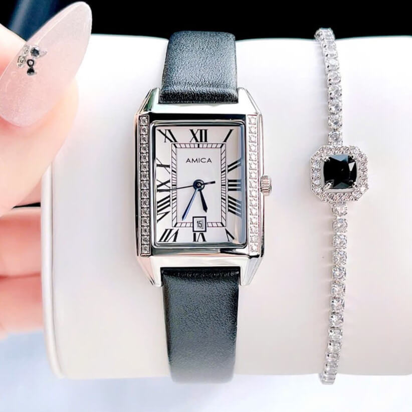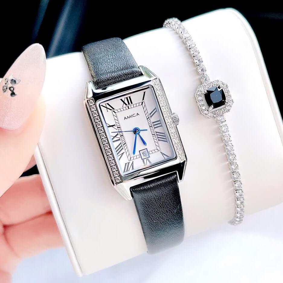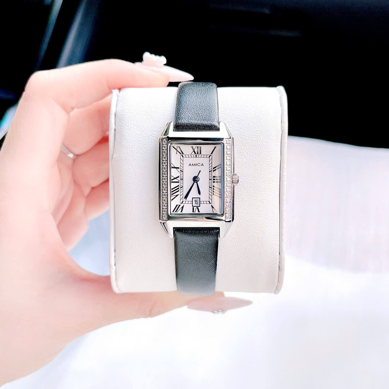 Thông tin chi tiết: Đồng Hồ Nữ Amica A042 Dây Da Đen Vỏ Silver 22x28mm Chính Hãng