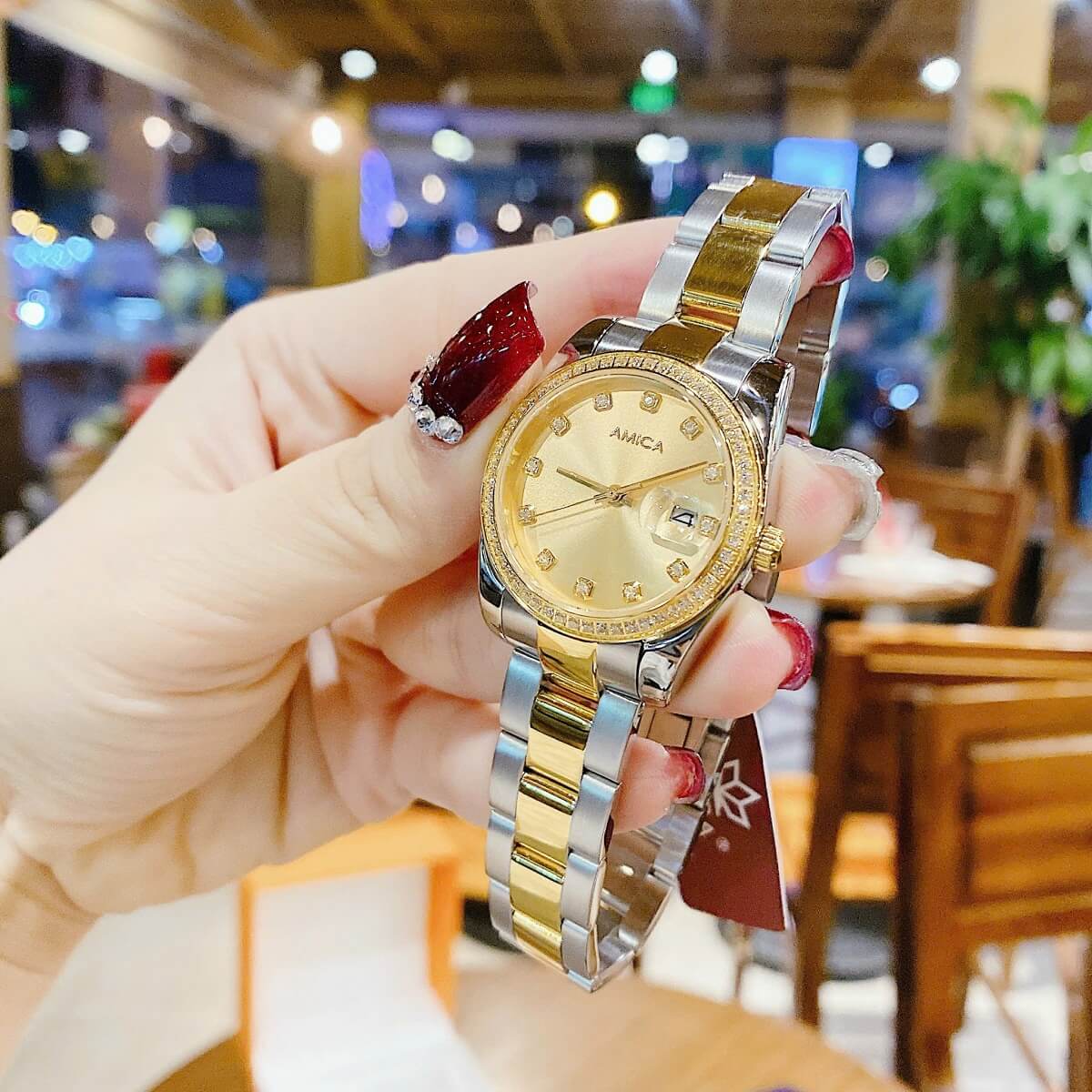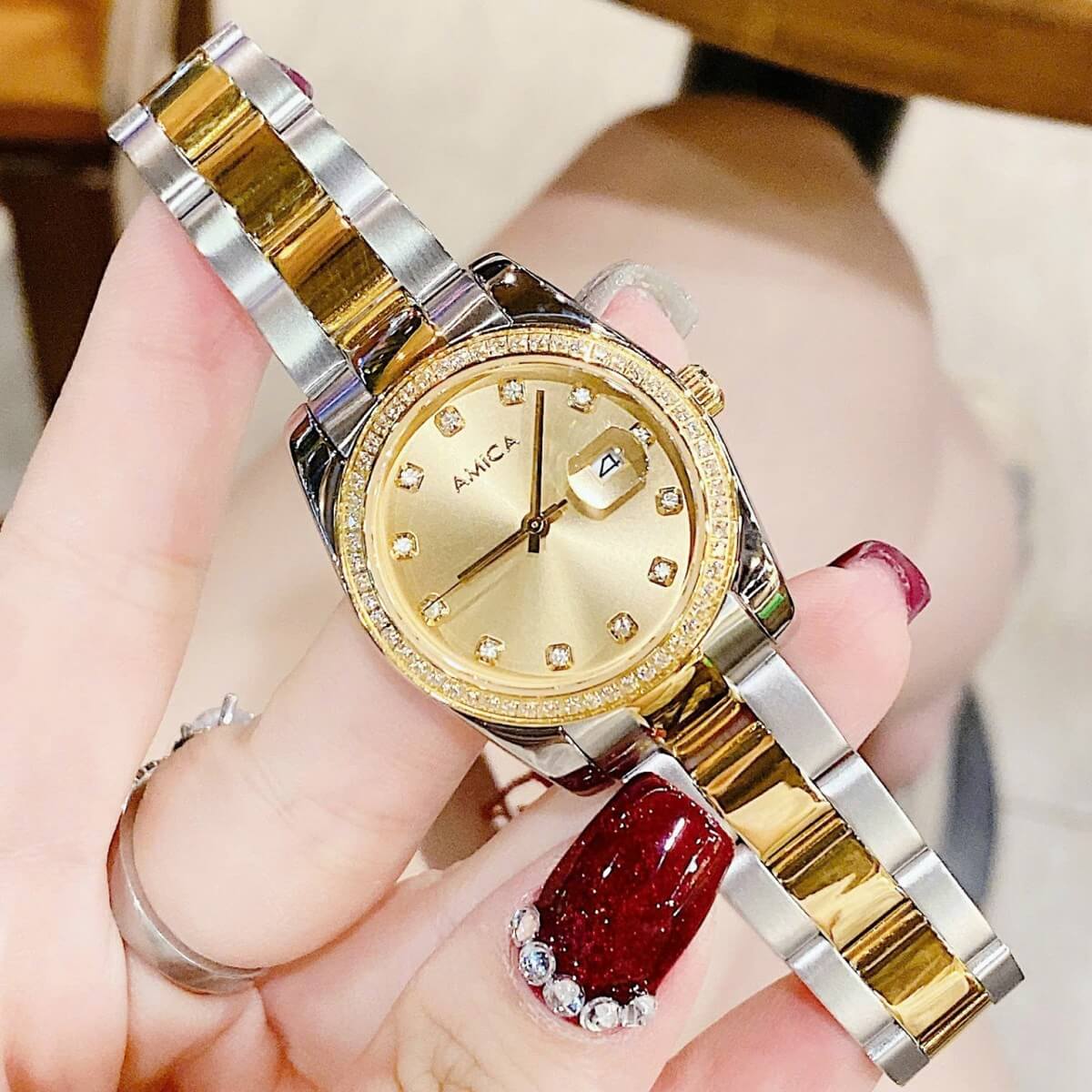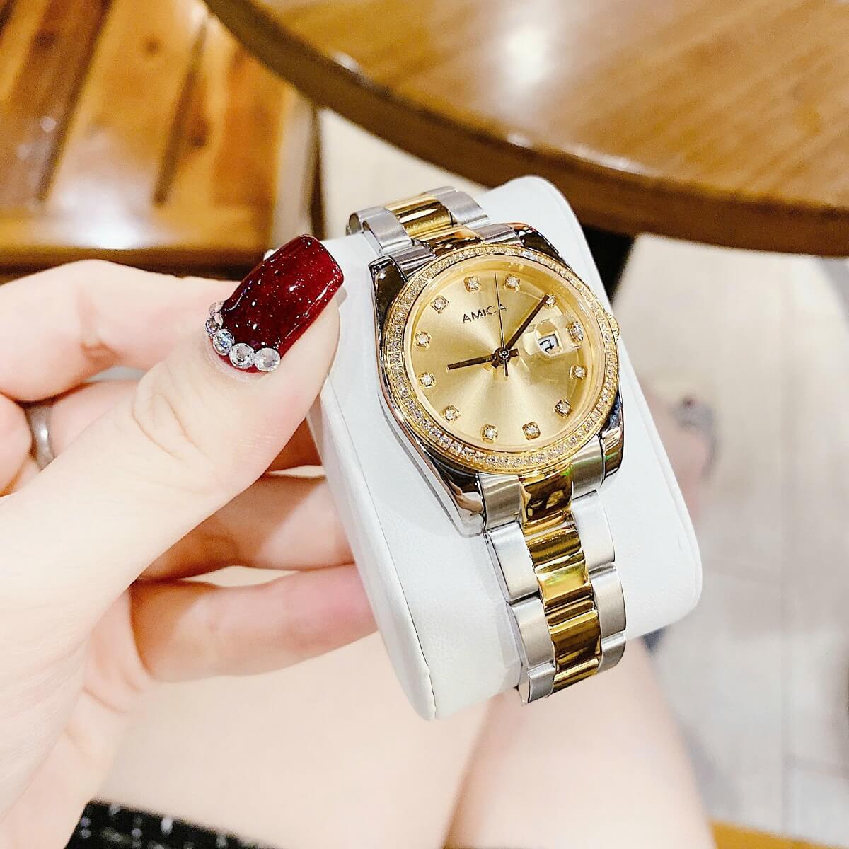 Thông tin chi tiết: Đồng Hồ Nữ Amica A058 Dây Vỏ Inox Demi Gold Đính Đá 32mm Chính Hãng