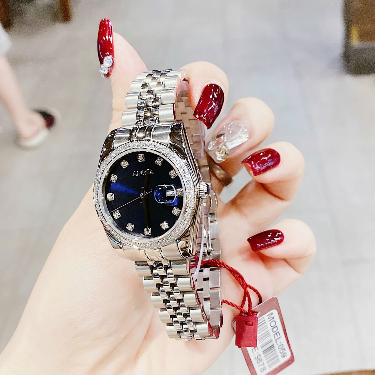 Đồng hồ nữ Amica A059 Dây Vỏ Inox Đính Đá Silver Mặt Xanh Size 32mm Chính Hãng là một lựa chọn tuyệt vời dành cho những ai yêu thích sự sang trọng, tinh tế nhưng cũng không kém phần hiện đại. Dưới đây là những điểm nổi bật khiến chiếc đồng hồ này trở thành một món phụ kiện không thể thiếu trong bộ sưu tập của các tín đồ yêu thích đồng hồ: