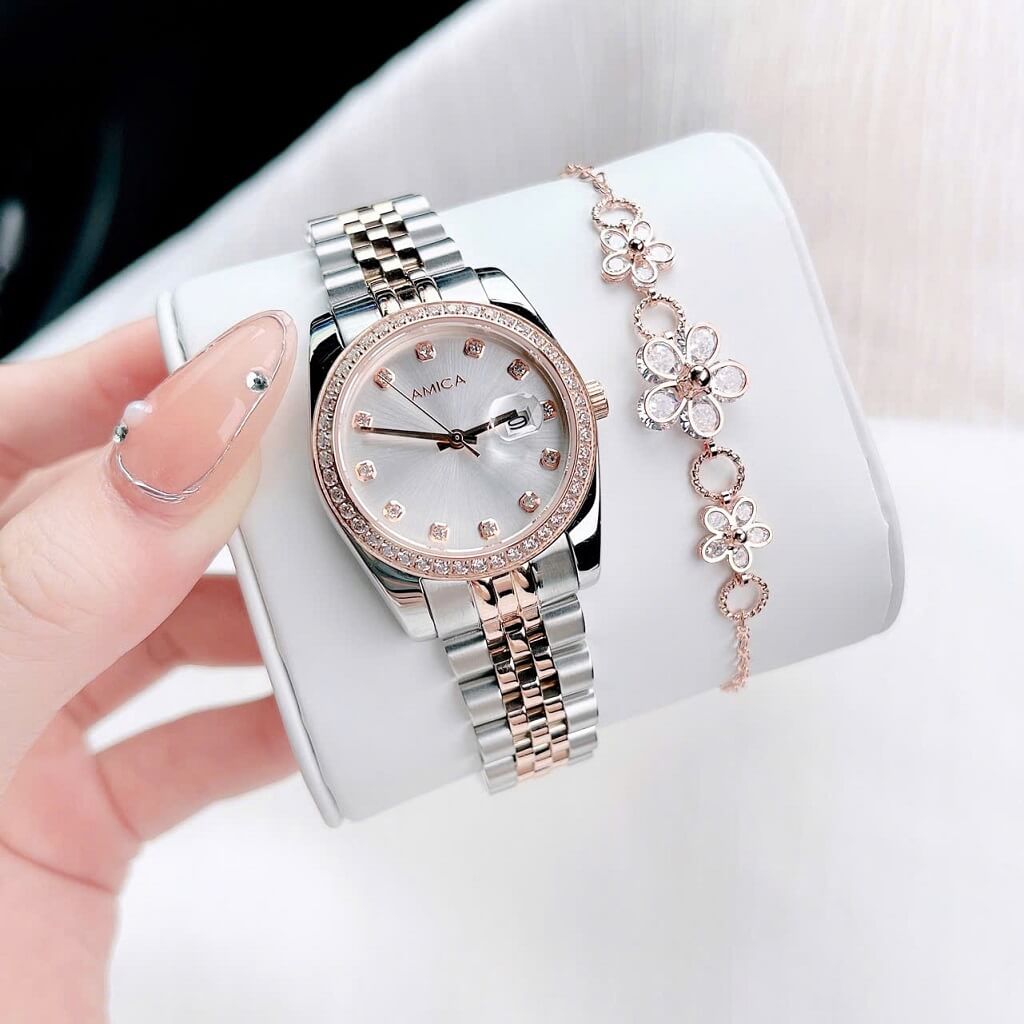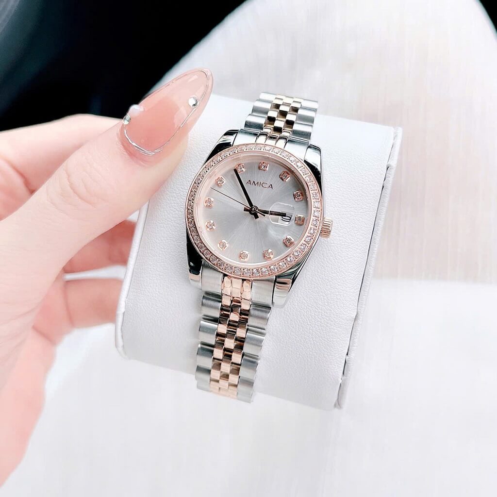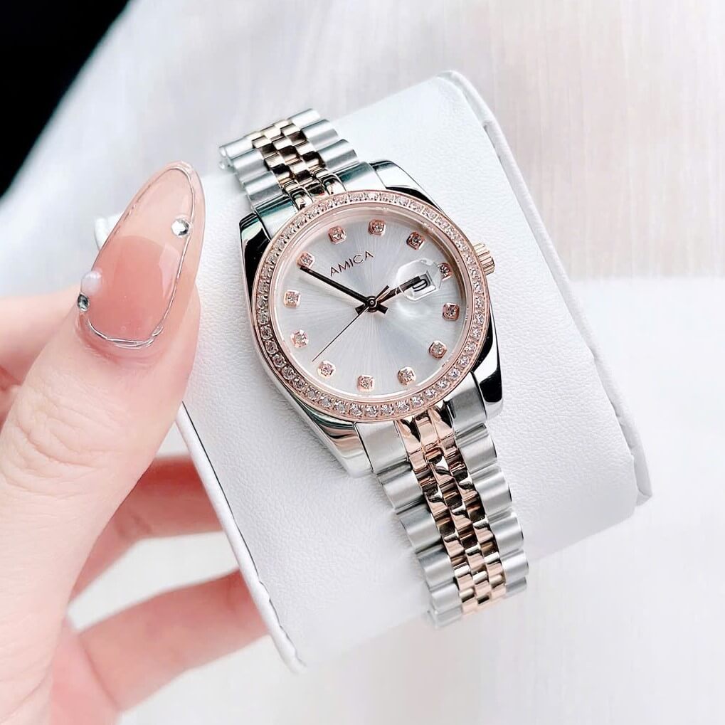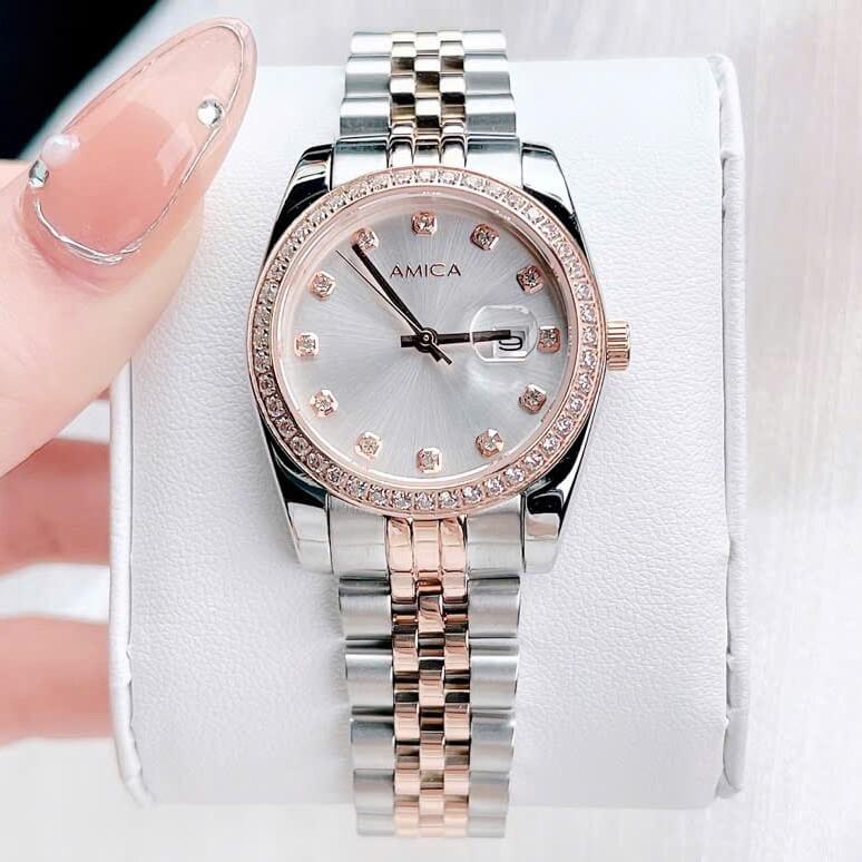 Đồng hồ nữ Amica A059 với thiết kế dây vỏ inox và kính sapphire là một sản phẩm thời trang và sang trọng, thích hợp cho những cô nàng yêu thích sự tinh tế và hiện đại. Dưới đây là một số đặc điểm nổi bật của sản phẩm: