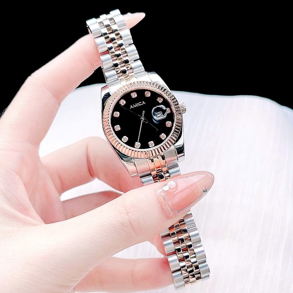 Đồng hồ nữ Amica A066 là một mẫu đồng hồ đẹp và sang trọng, phù hợp với những ai yêu thích phong cách thanh lịch và hiện đại. Dưới đây là một số đặc điểm nổi bật của sản phẩm này: