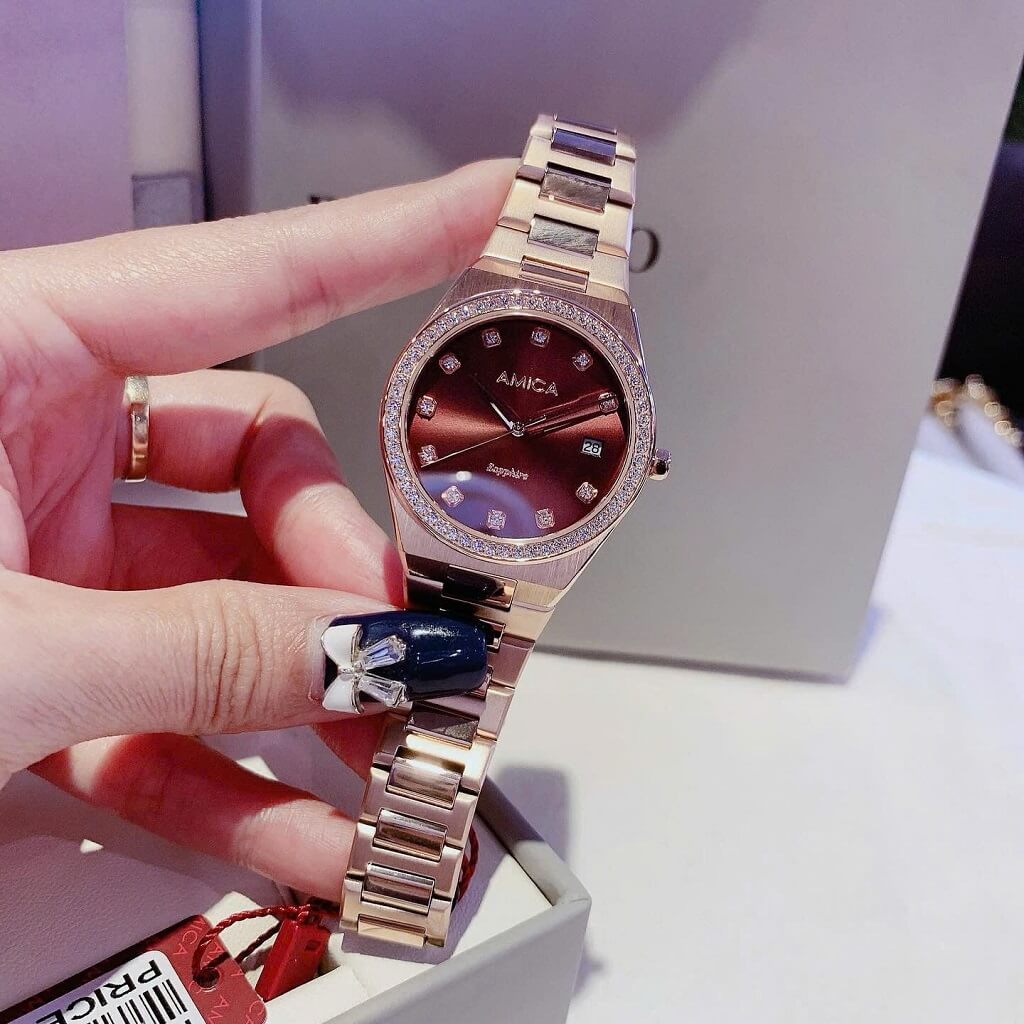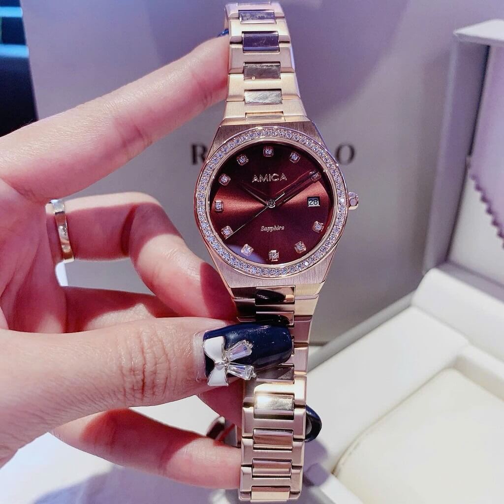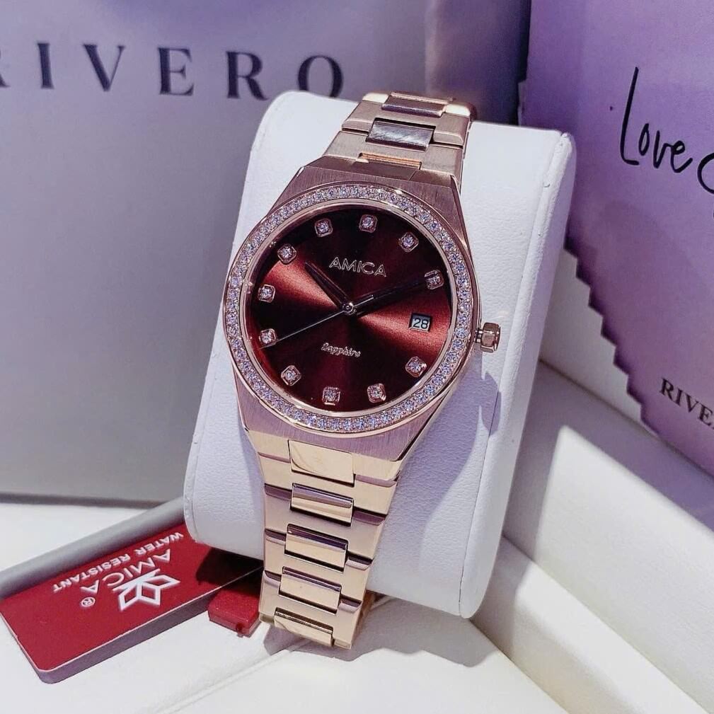 Thông tin chi tiết: Đồng Hồ Nữ Amica A071 Dây Vỏ Inox Kính Sapphire Rose Brown 33mm Chính Hãng