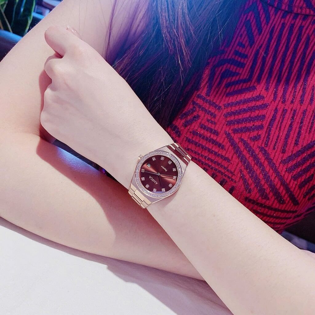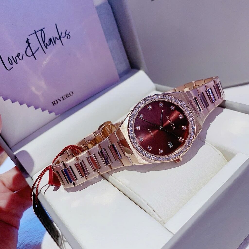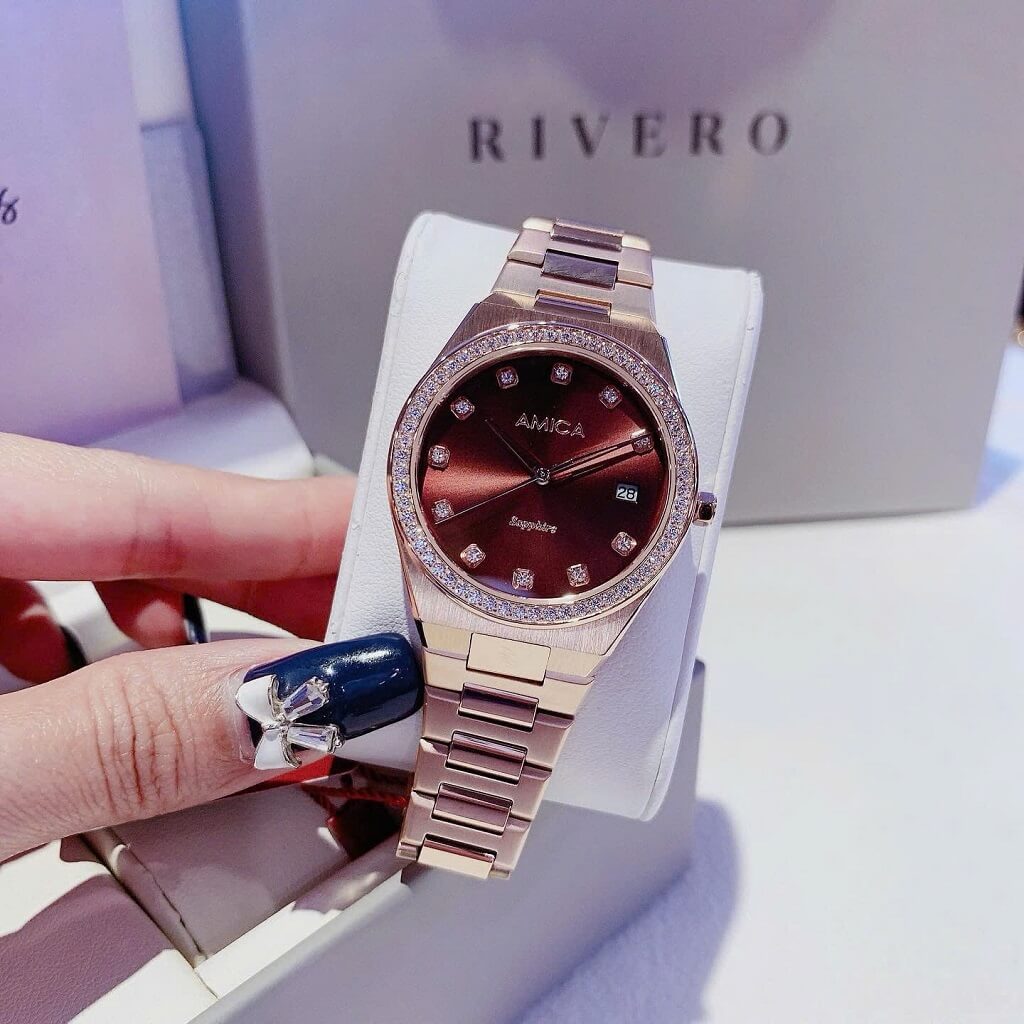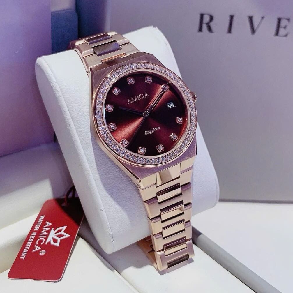 Thông tin chi tiết: Đồng Hồ Nữ Amica A071 Dây Vỏ Inox Kính Sapphire Rose Brown 33mm Chính Hãng