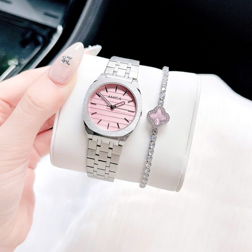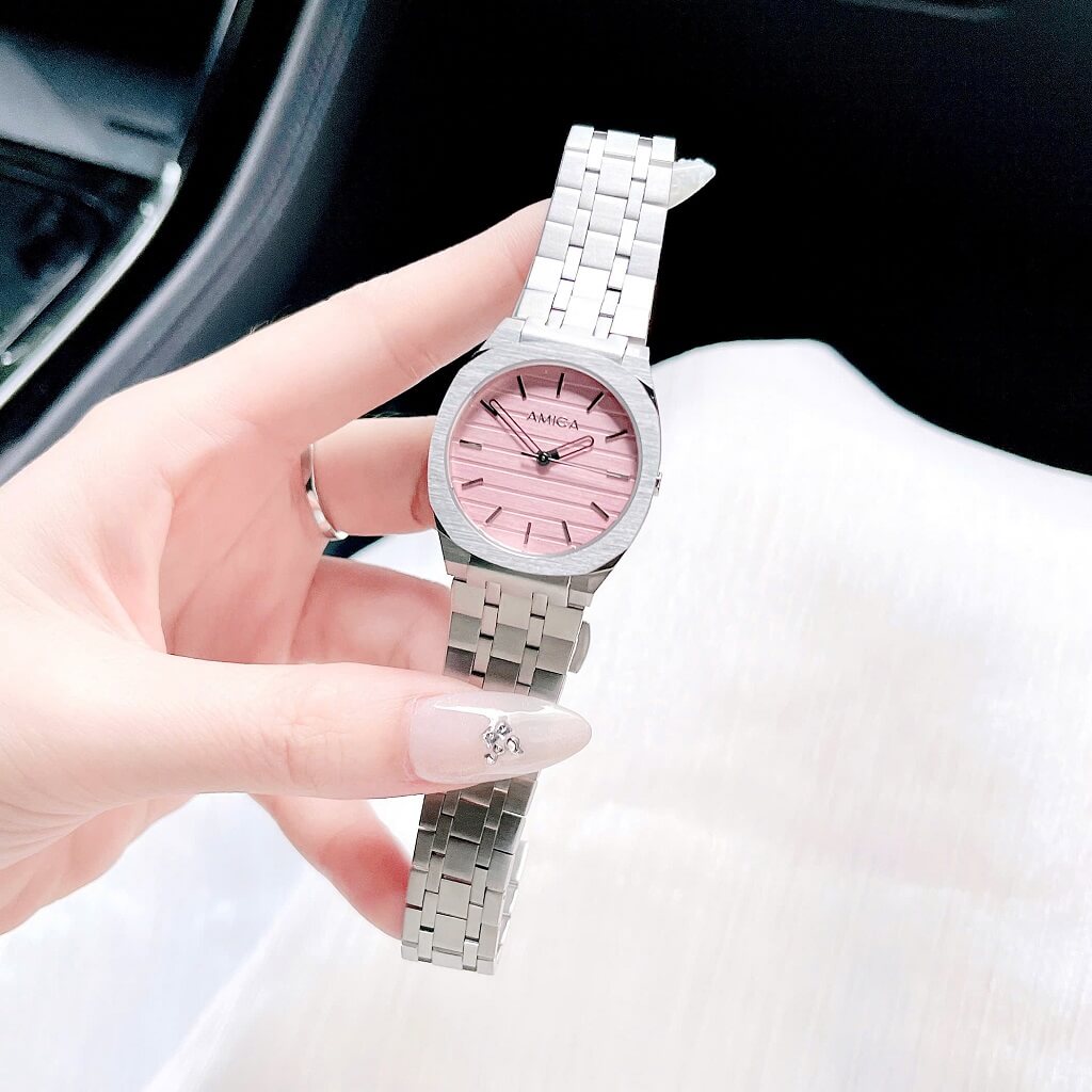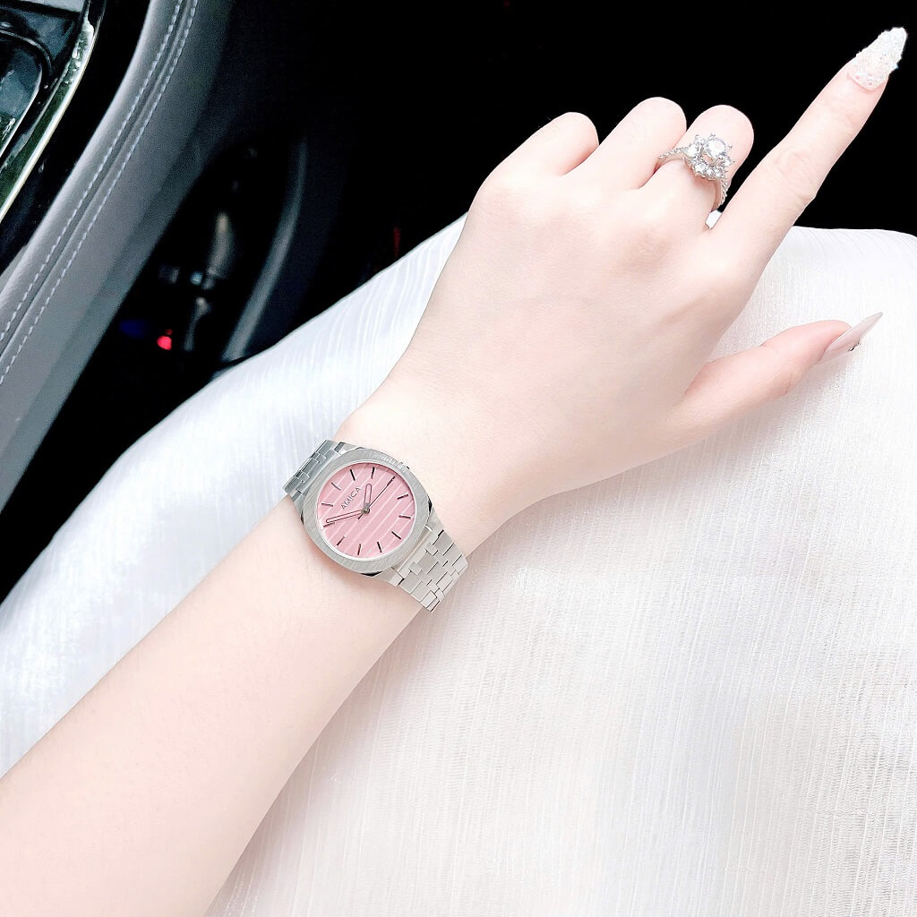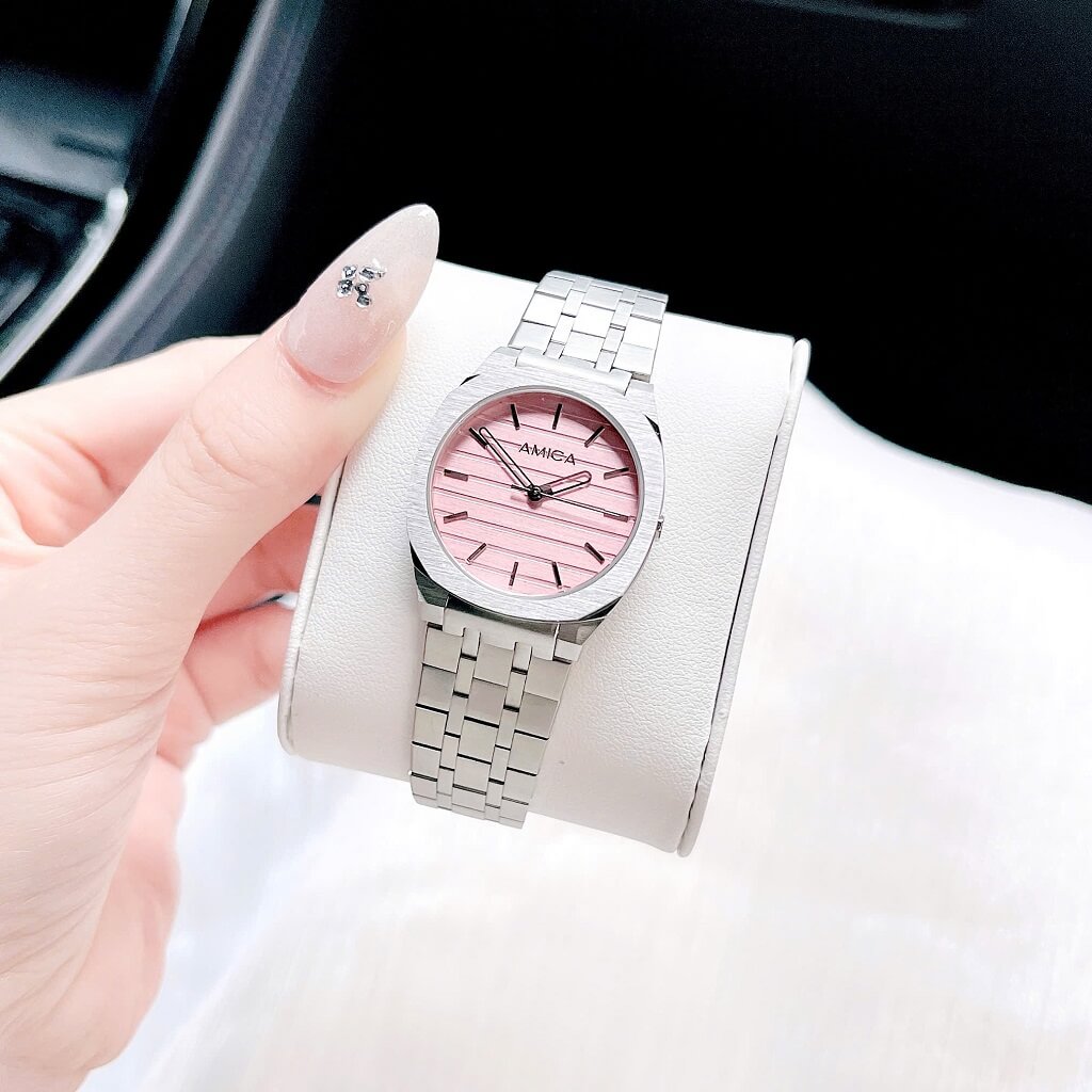 Mặt số hồng: Màu sắc nhẹ nhàng của mặt số mang lại cảm giác tươi mới và dễ chịu, phù hợp với nhiều phong cách trang phục khác nhau.