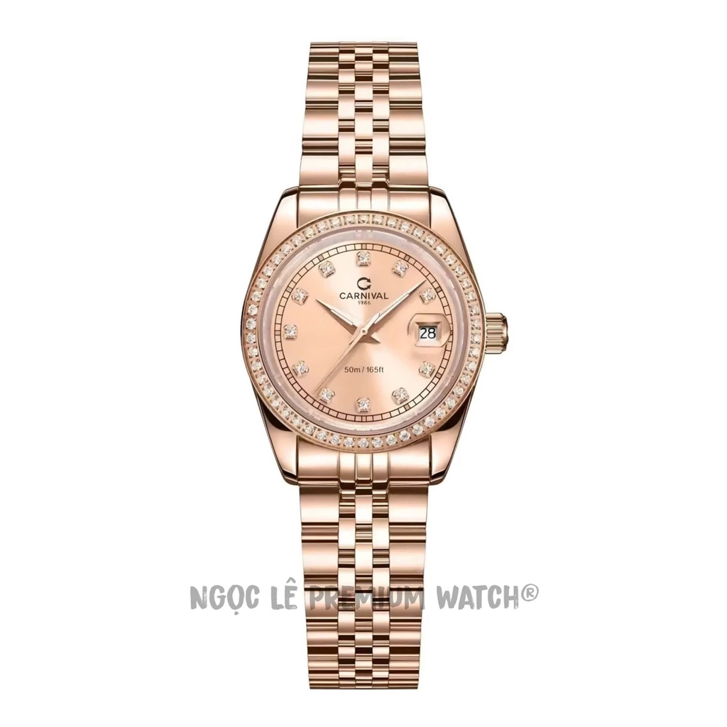 Đồng Hồ Nữ Carnival 8131L2 Dây Thép Vàng Hồng Mặt Vàng Hồng Viền Đá Size 30mm Quartz