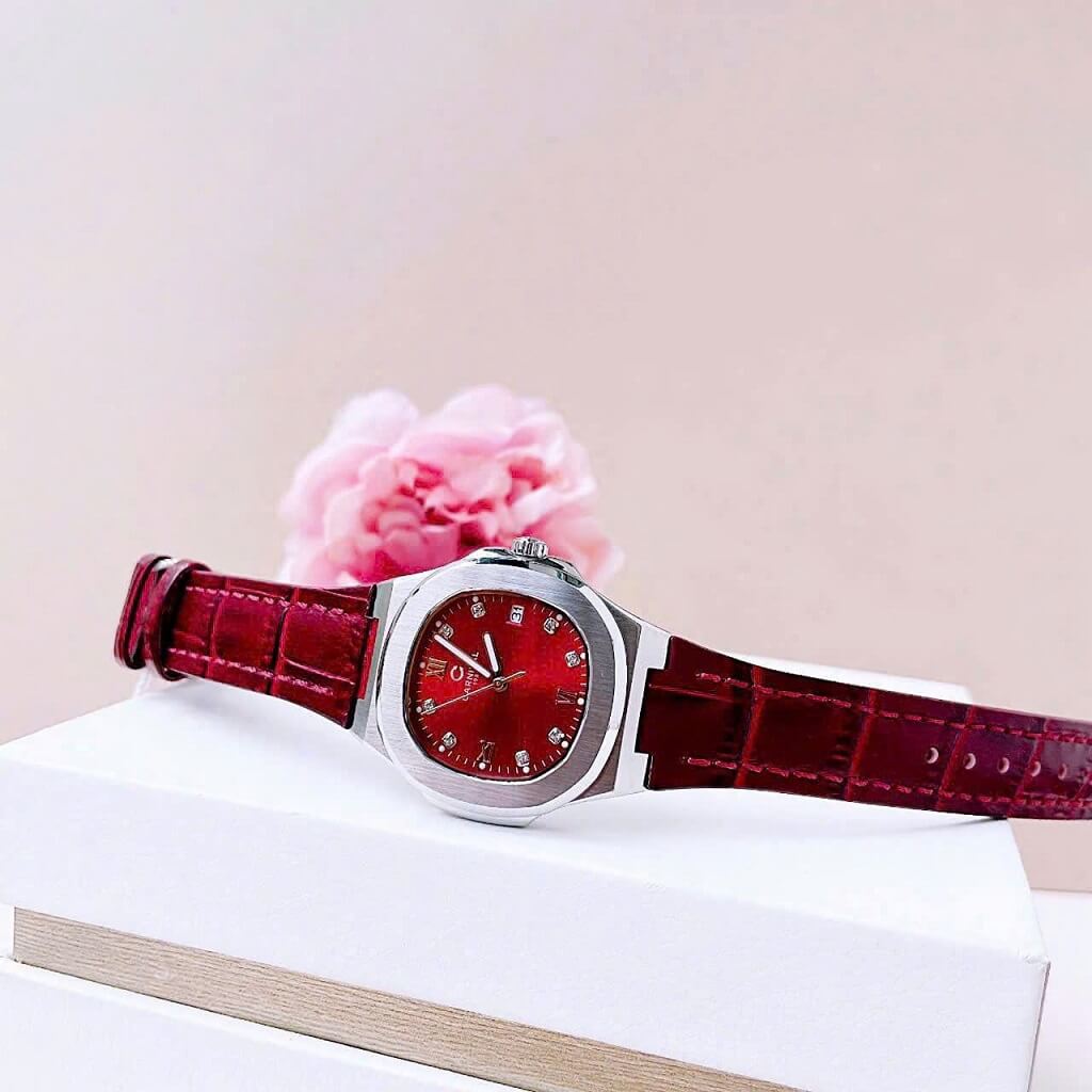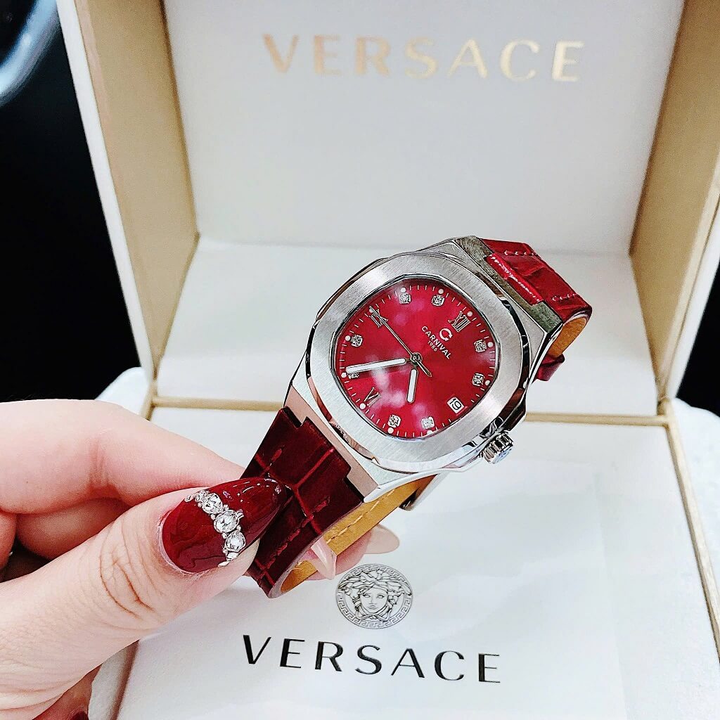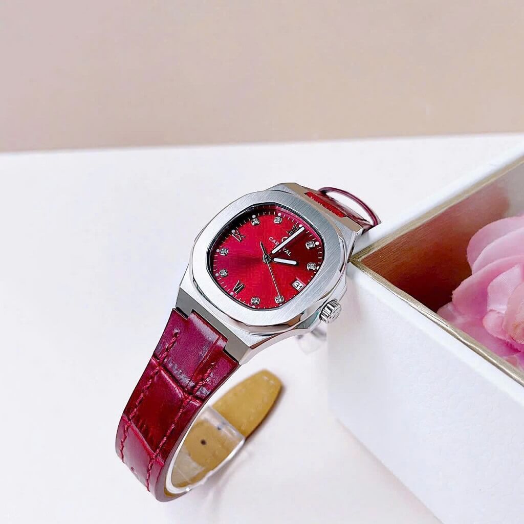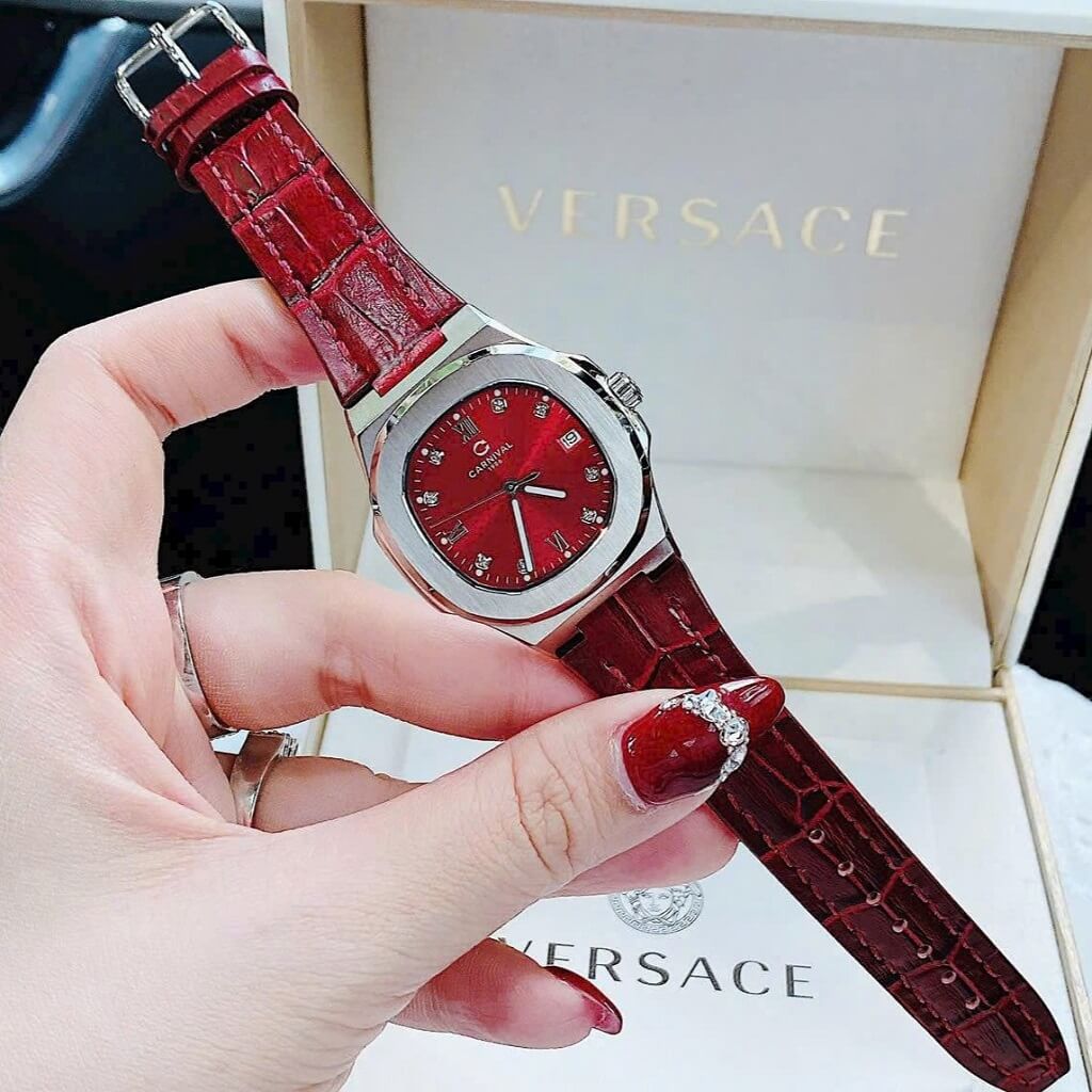 Đồng Hồ Nữ Carnival 8160L Dây Da Đỏ Mặt Đỏ Vỏ Silver Size 34mm – Thanh lịch & Cuốn hút từng ánh nhìn