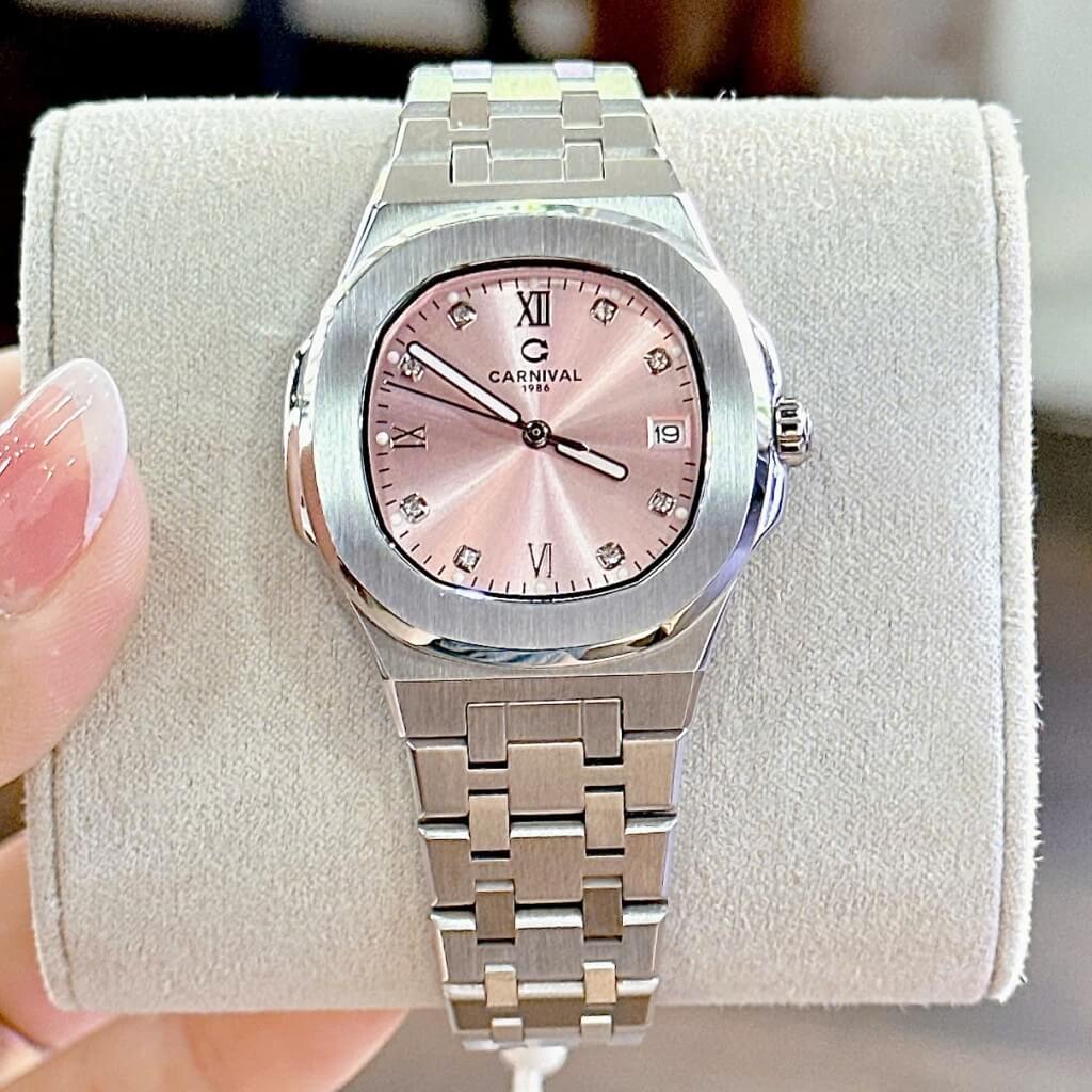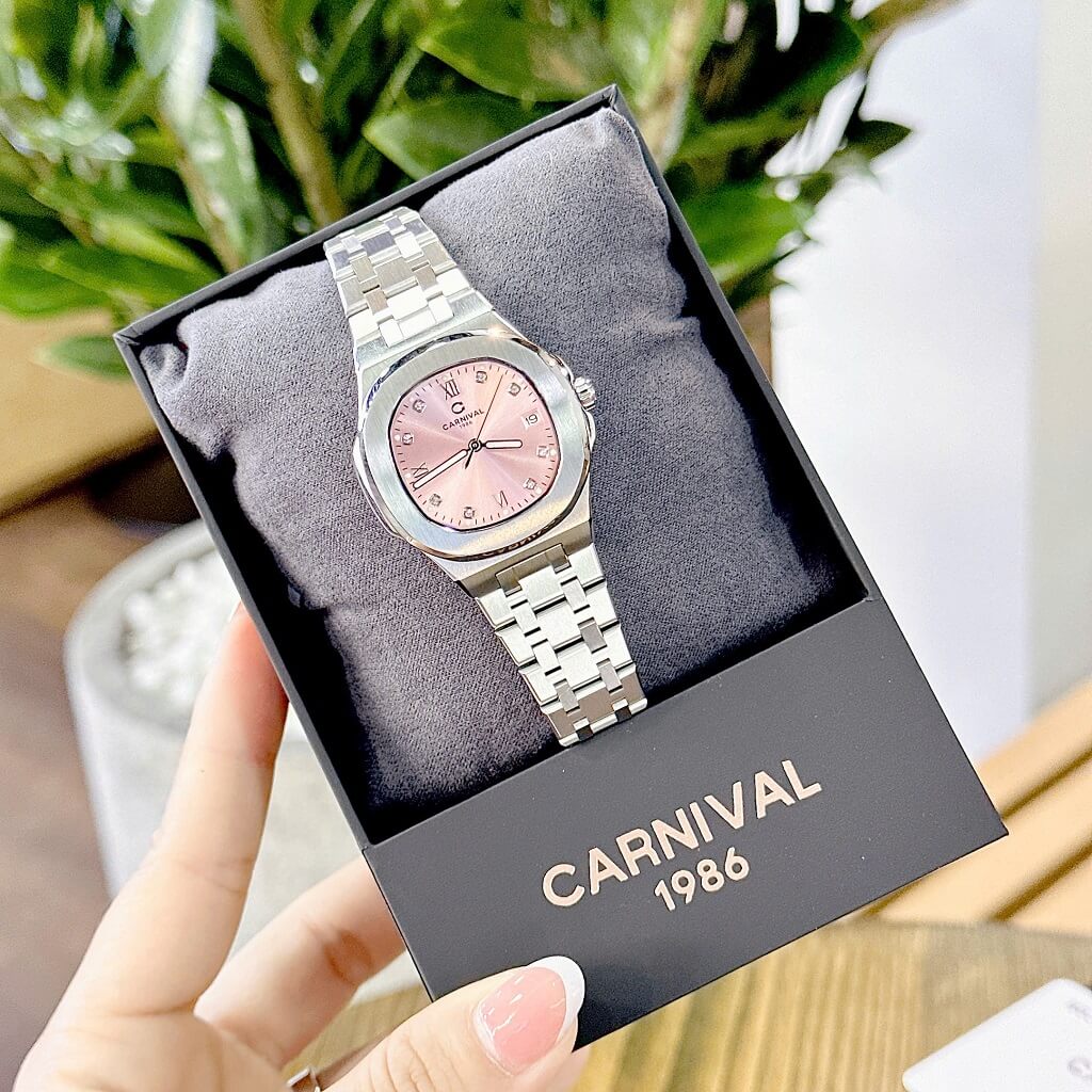 Đồng Hồ Nữ Carnival 8160L Mặt Hồng Dây Kim Loại Silver Size 34mm – Nữ tính, thanh lịch và cuốn hút